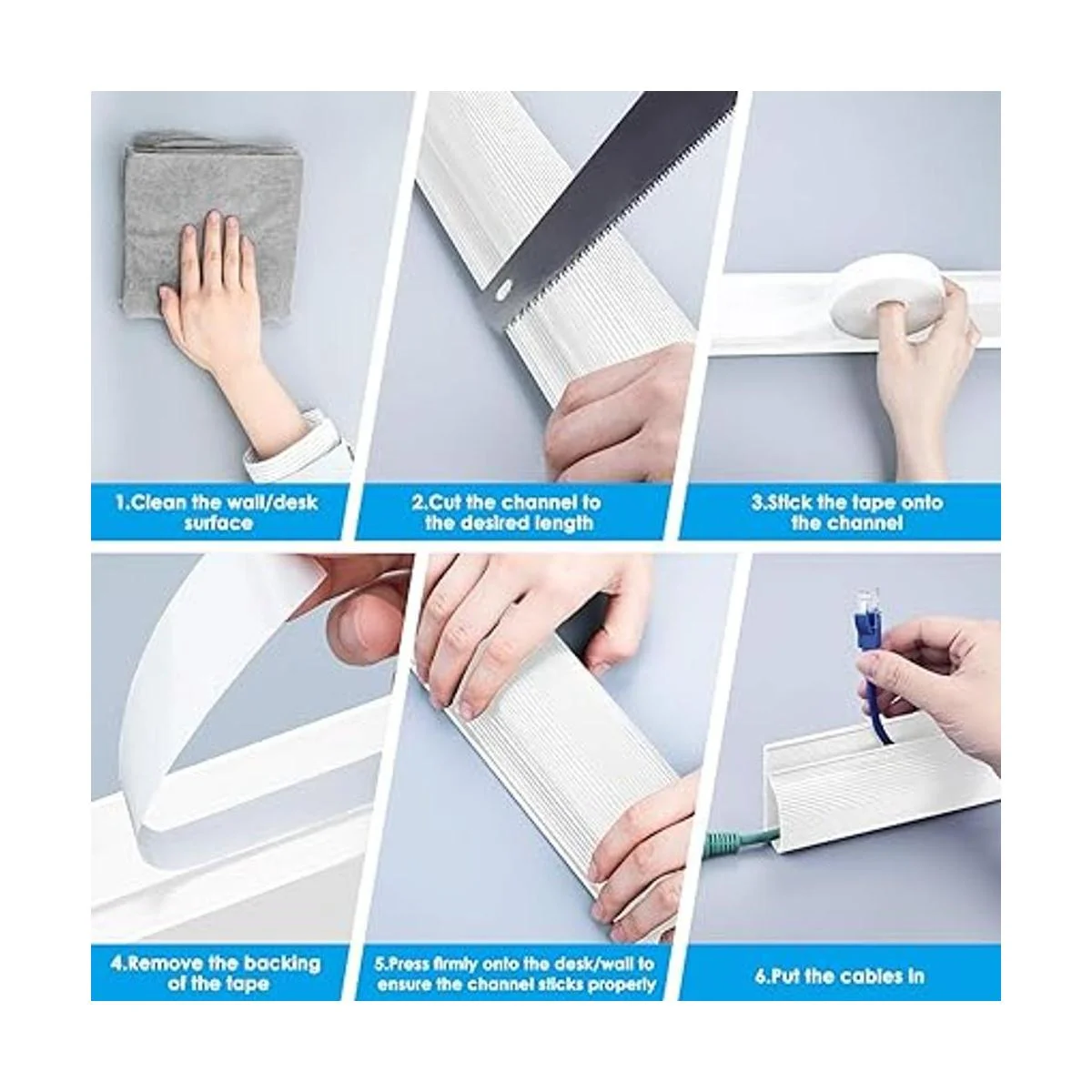 Conductos de cable fáciles de instalar: ya sea para montar los canales J debajo de tu escritorio o detrás de él, puedes hacerlo en unos minutos con nuestra cinta adhesiva súper fuerte. No necesita taladrar ni clavar. La cinta adhesiva de 196 pulgadas es tres veces más larga que los 4 canales combinados. Simplemente aplica tres filas de cinta para cada canal y nunca te preocupes por que se caiga de tu escritorio o pared