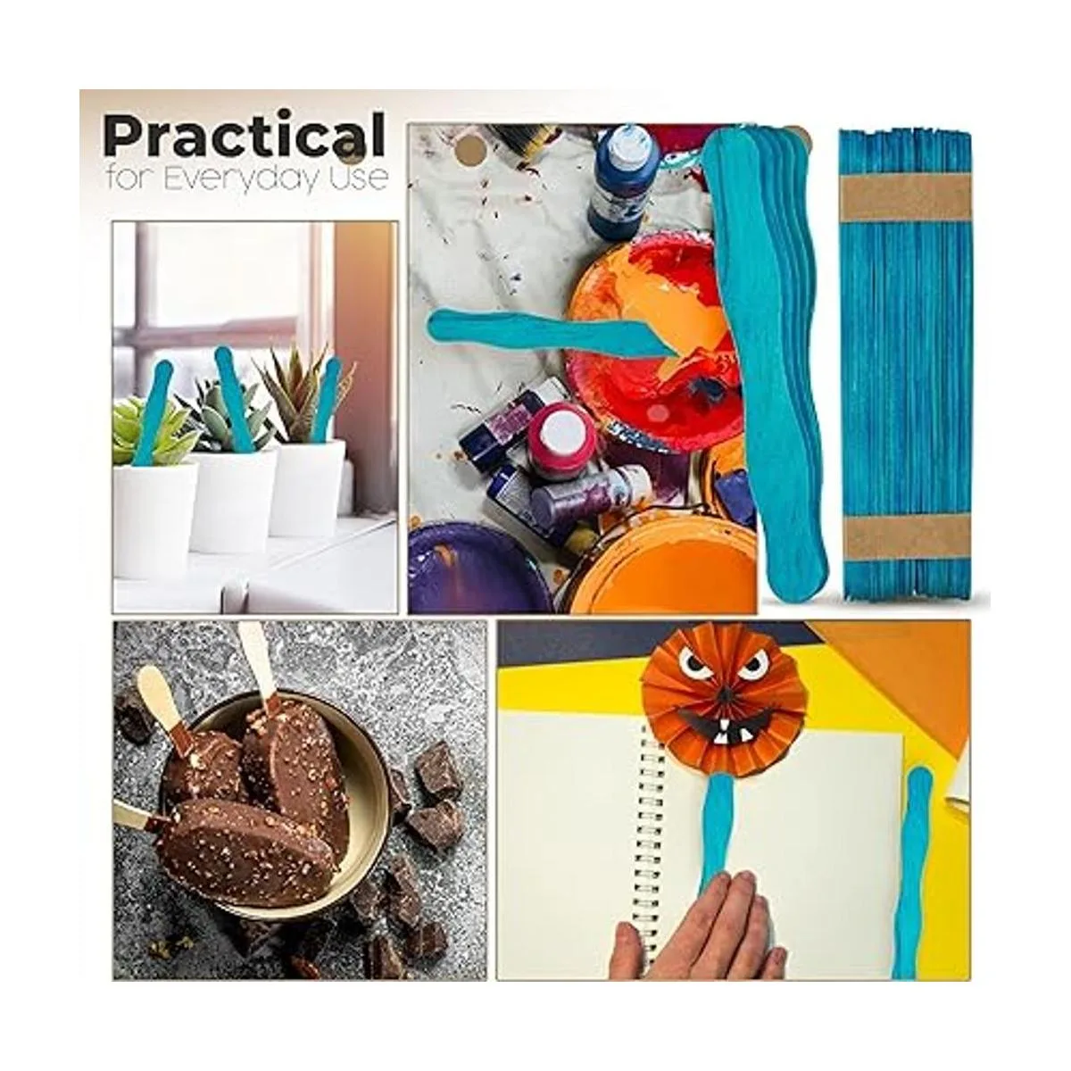 Versátil: nuestros palitos jumbo muestran versatilidad al siguiente nivel. En verano, son grandes helados y barras de helado. Se pueden utilizar en otoño e invierno para hacer regalos de vacaciones de temporada. Simplemente pega al papel a cartulina gruesa, y listo.