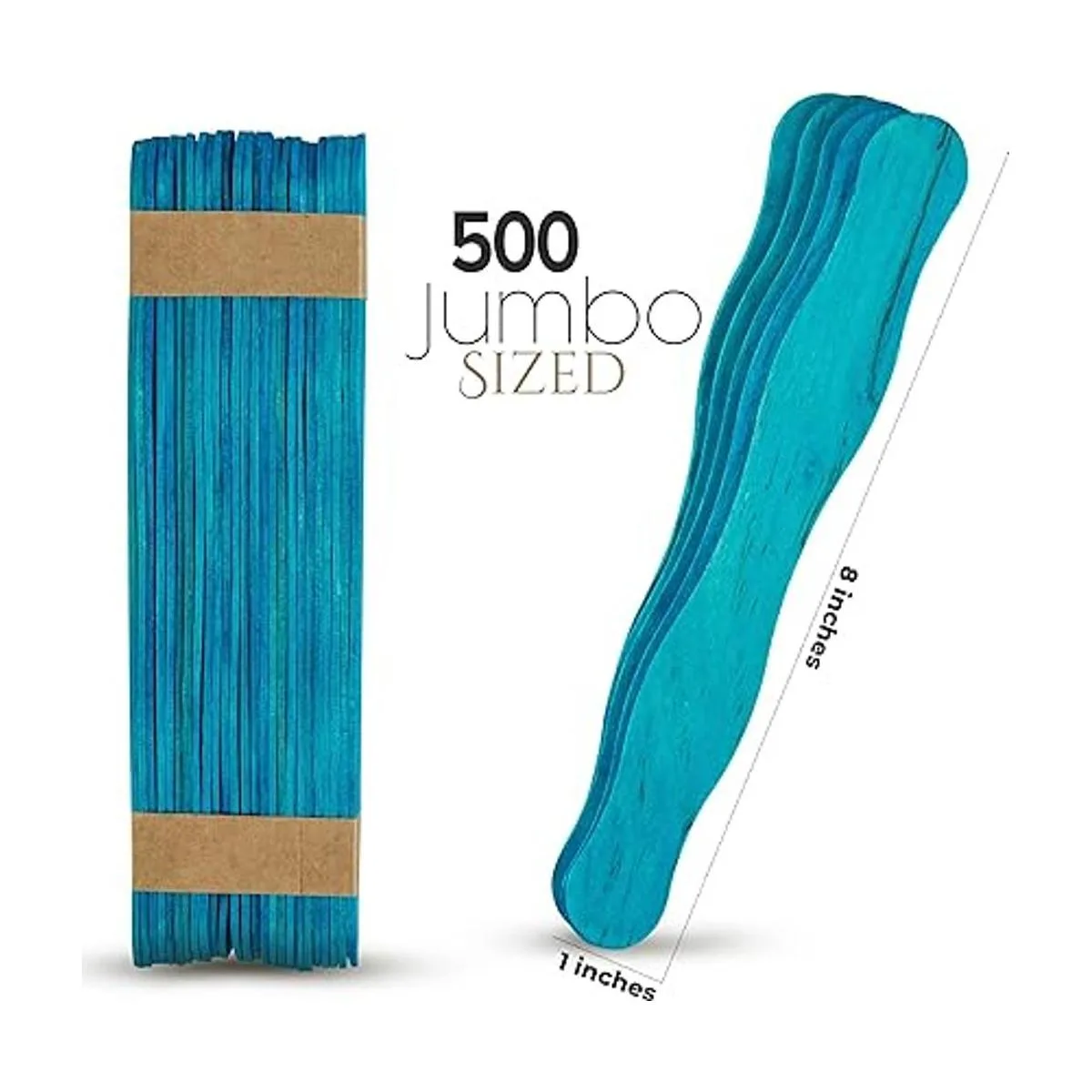 Manaloom Paquete de 500 palitos curvados para manualidades, palitos de paletas de madera de abedul de 8 pulgadas para manualidades, palos de manualidades gigantes para manijas de ventilador, programas de boda, suministros de manualidades de bricolaje, azul