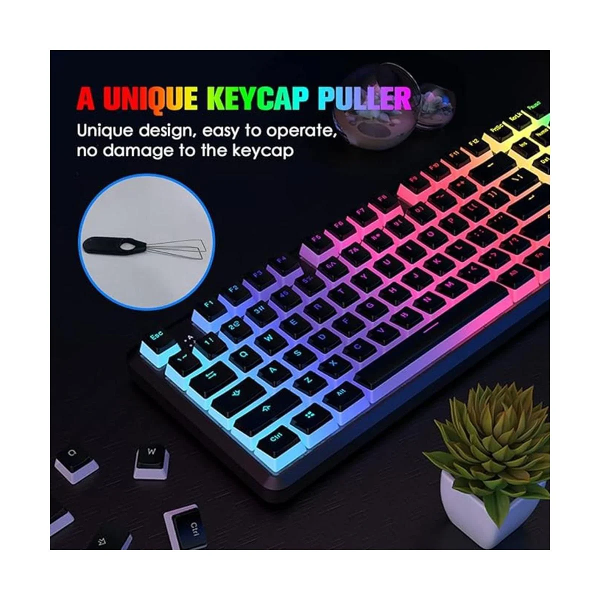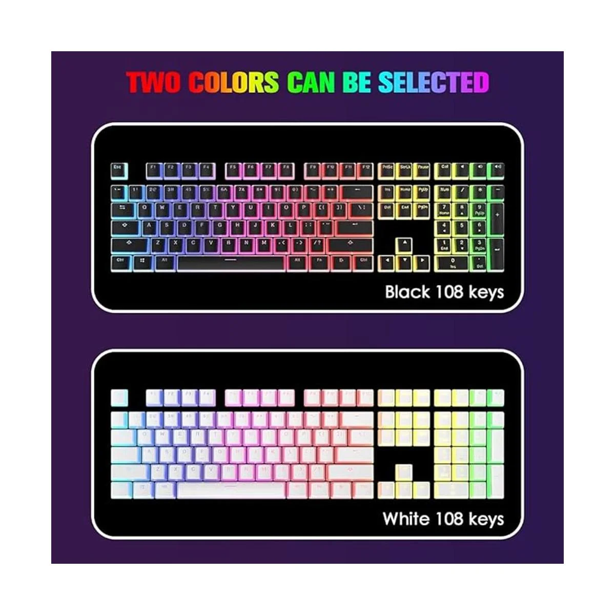 Diseño translúcido de 108 teclas: el diseño de doble capa de estas teclas personalizadas está diseñado para dejar pasar más luz, haciendo que tu teclado mecánico retroiluminado RGB sea aún más impresionante.