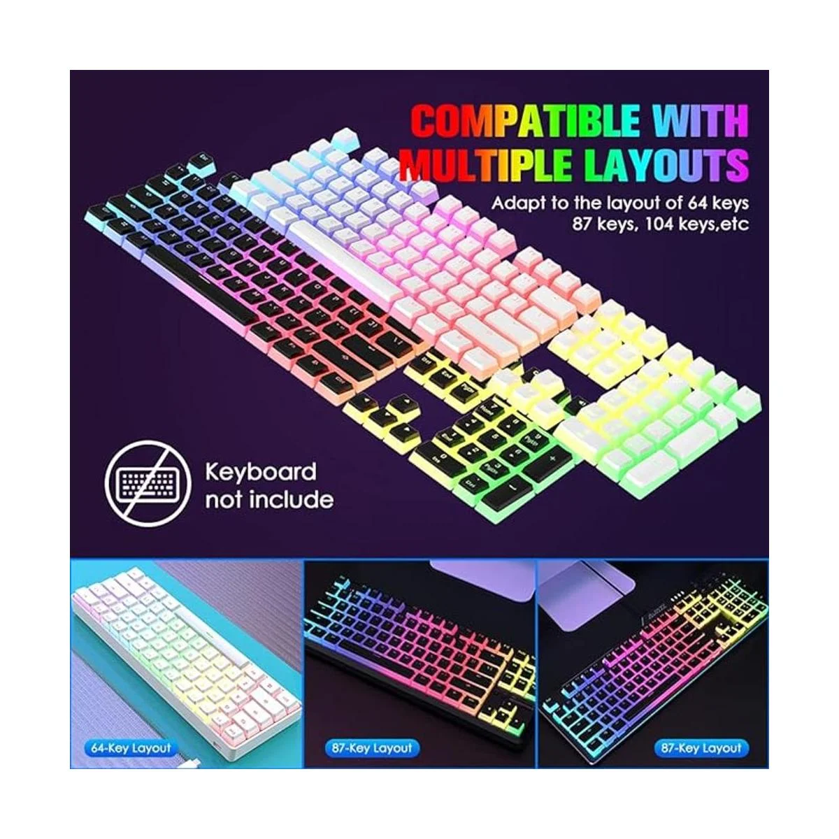Juego de teclas retroiluminadas de pudín, este juego de teclas se adapta a la mayoría de teclados mecánicos de 60, 82, 84, 87, 104 y 108 teclas