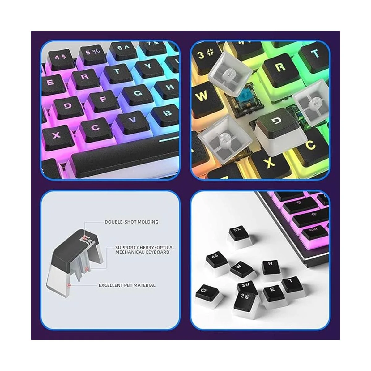 Compatibilidad: el juego completo de teclas es compatible con la mayoría de teclados mecánicos de juegos. Compatible con interruptores Cherry Mx, interruptores Gateron, interruptores Kailh Box, interruptores Outemu. Disposición estándar ANSI US así como ISO