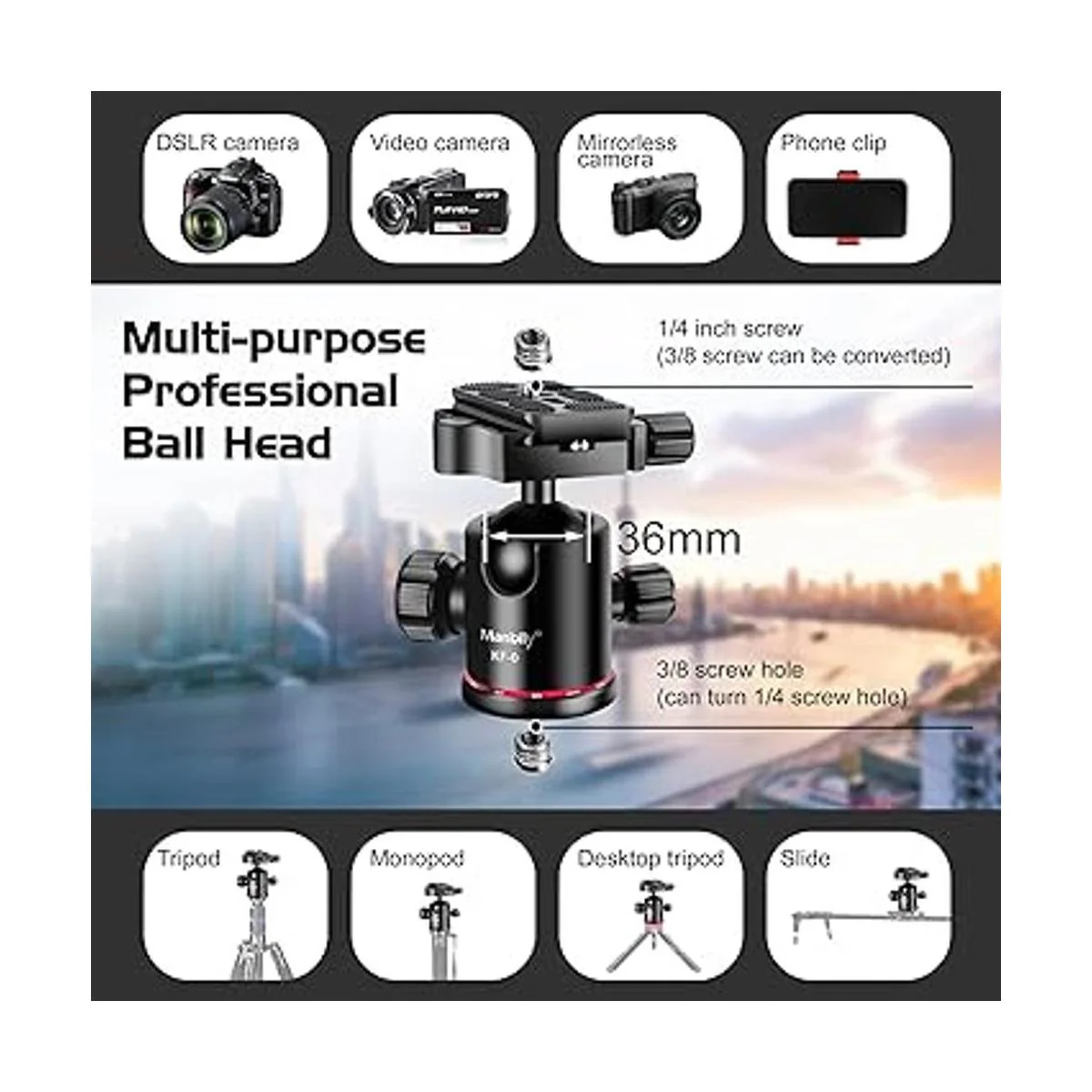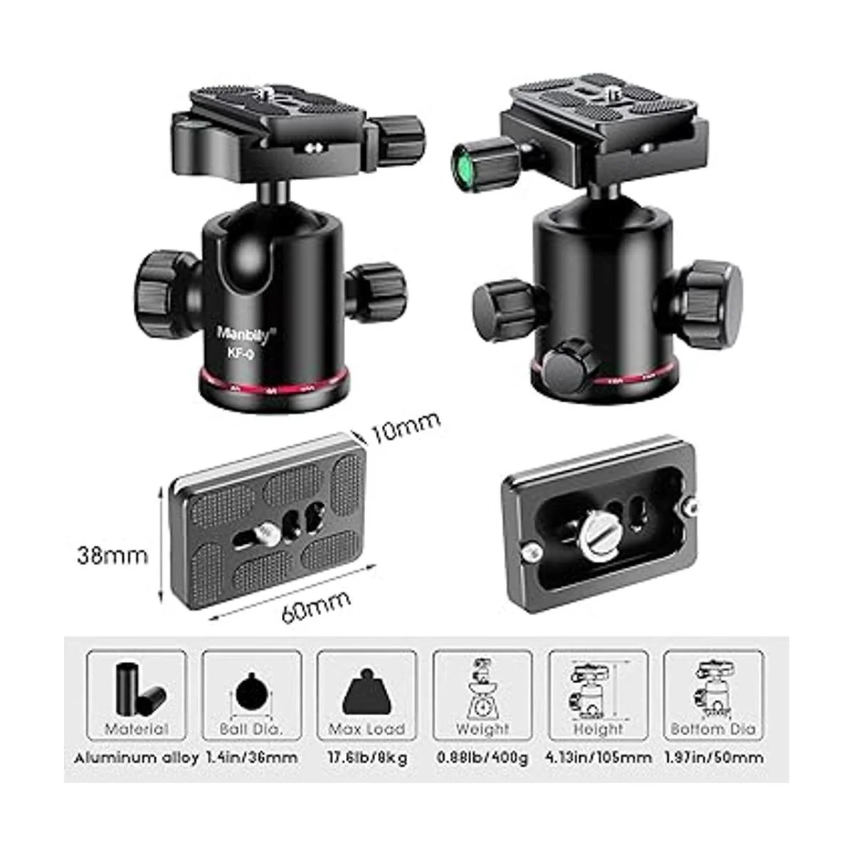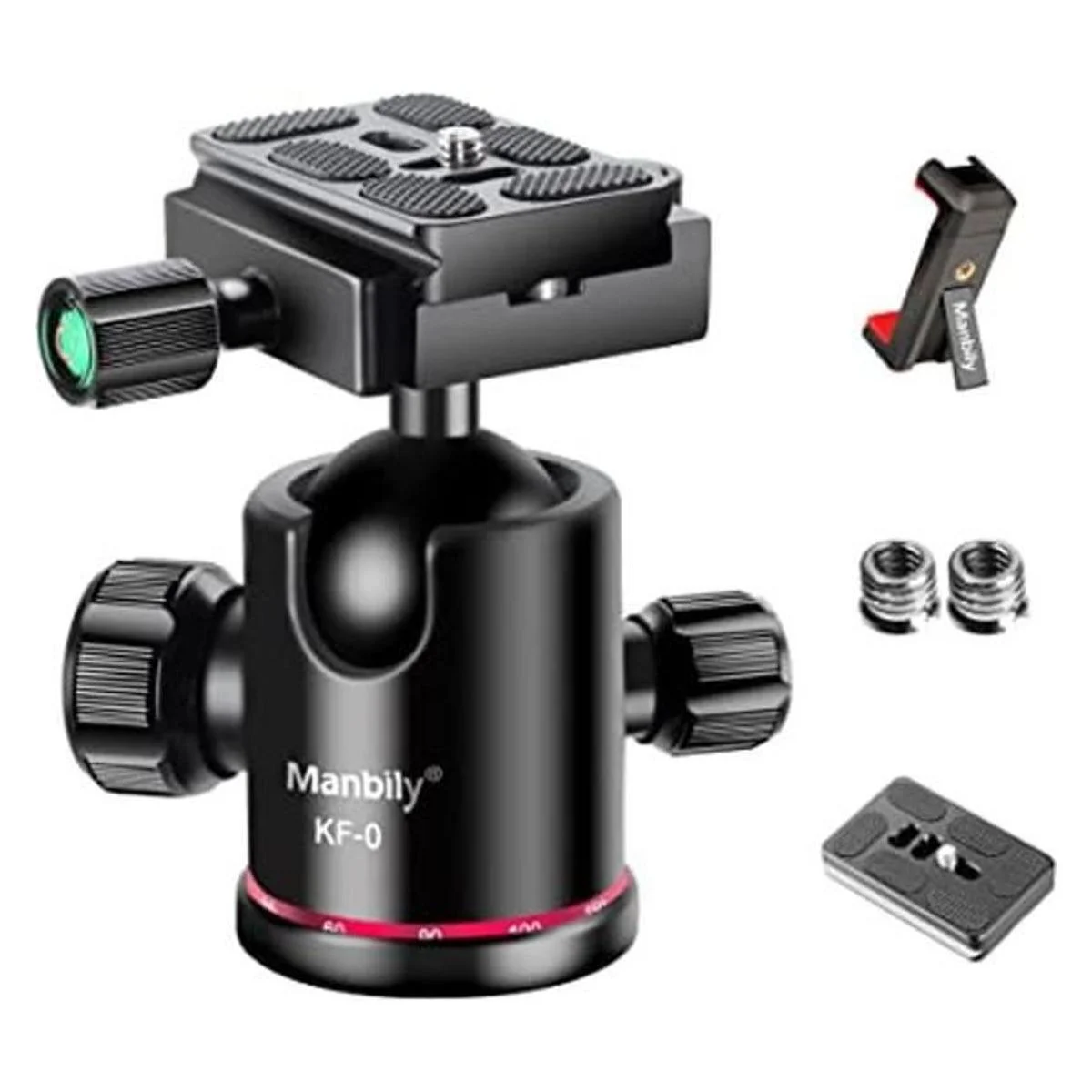 Manbily Cabezal de bola de fotografía, rotación de 360 grados, con placa de liberación rápida y calibre de nivel, aluminio metálico, adecuado para trípode, DSLR, videocámara, monopie, carga máxima de 17.6 libras KF0