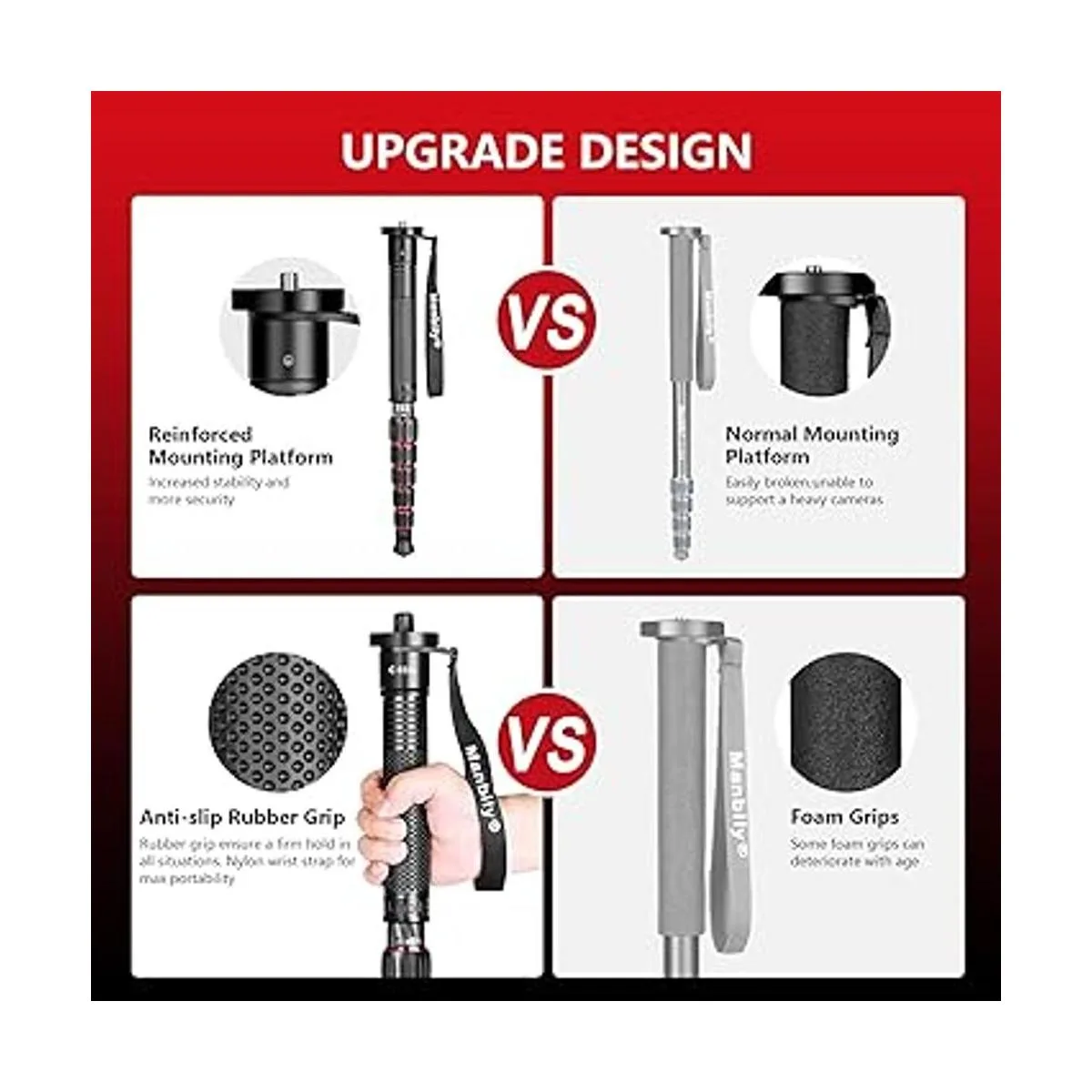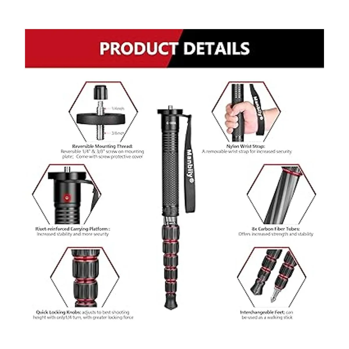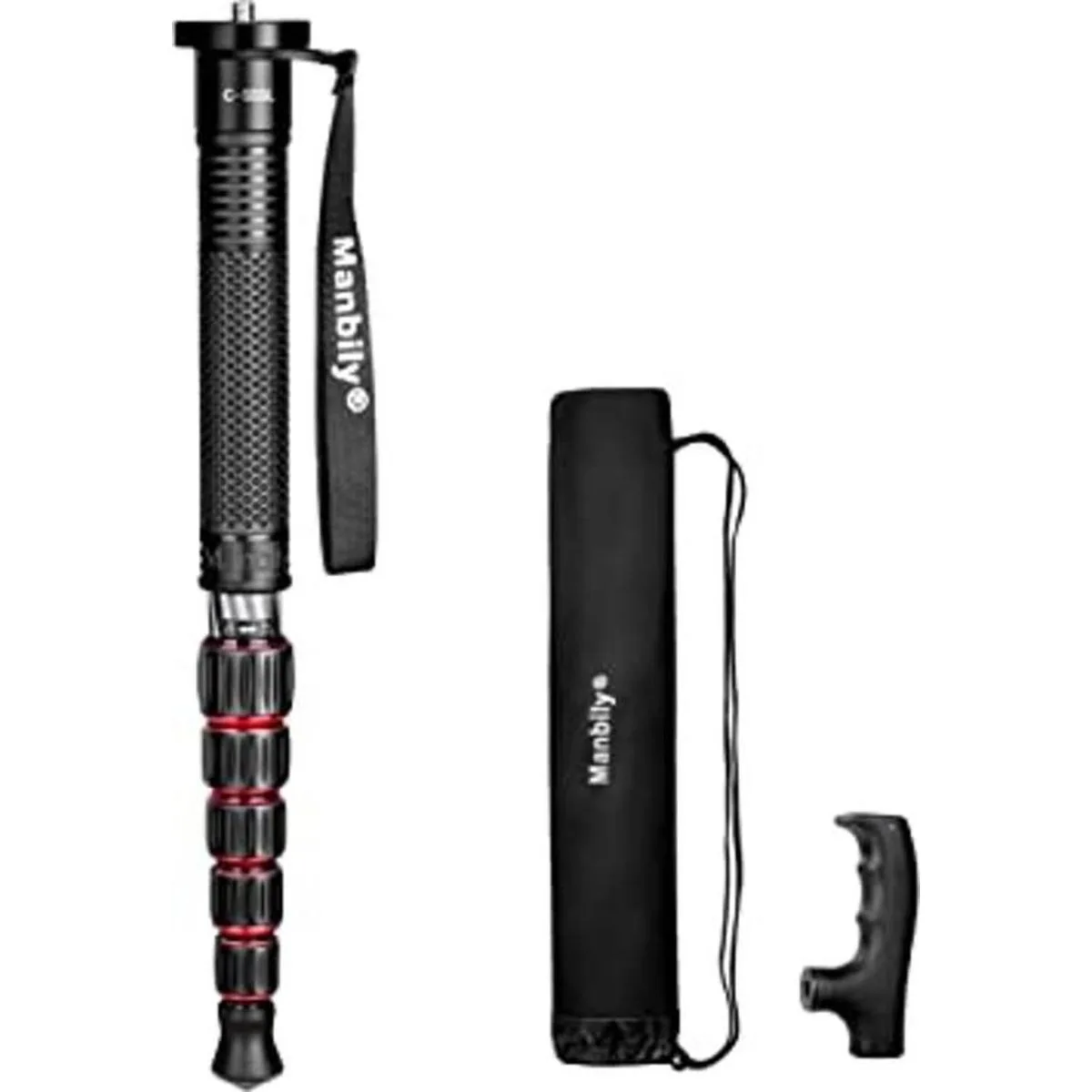 Manbily Monopod de fibra de carbono portátil, compacto, ligero, monopié de viaje con bolsa de transporte, asa de bastón, para videocámara DSLR Canon, Nikon, Sony, 6 secciones de hasta 61 pulgadas C555L