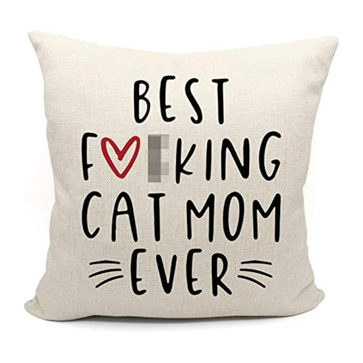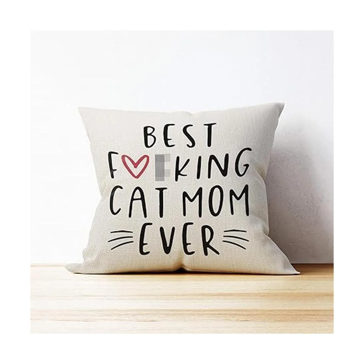Manchengzi Best Cat Mom Ever Throw Funda de almohada, divertido regalo para gato mamá, regalo para gato mamá, 18.0 x 18.0 in, funda de cojín de lino para sofá cama