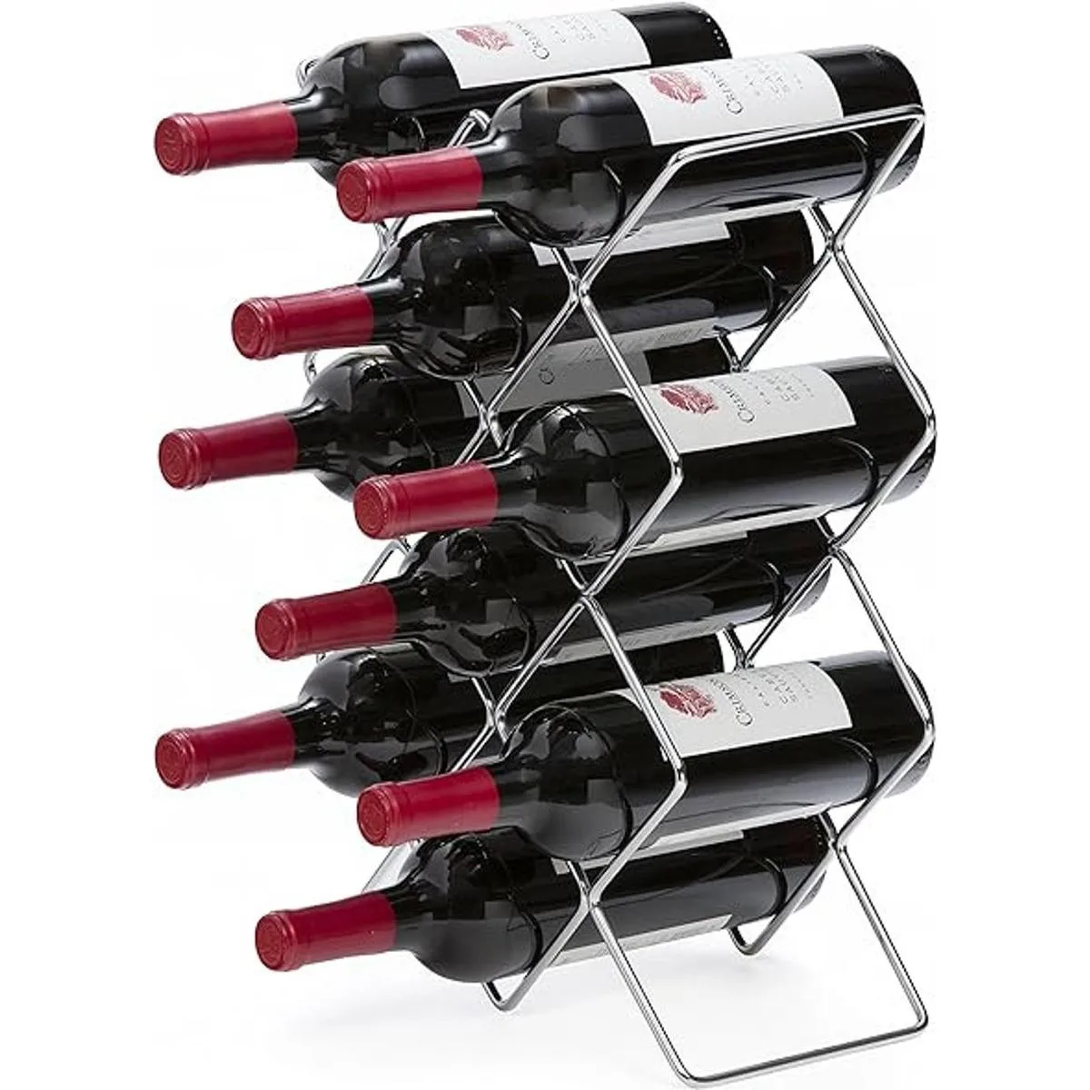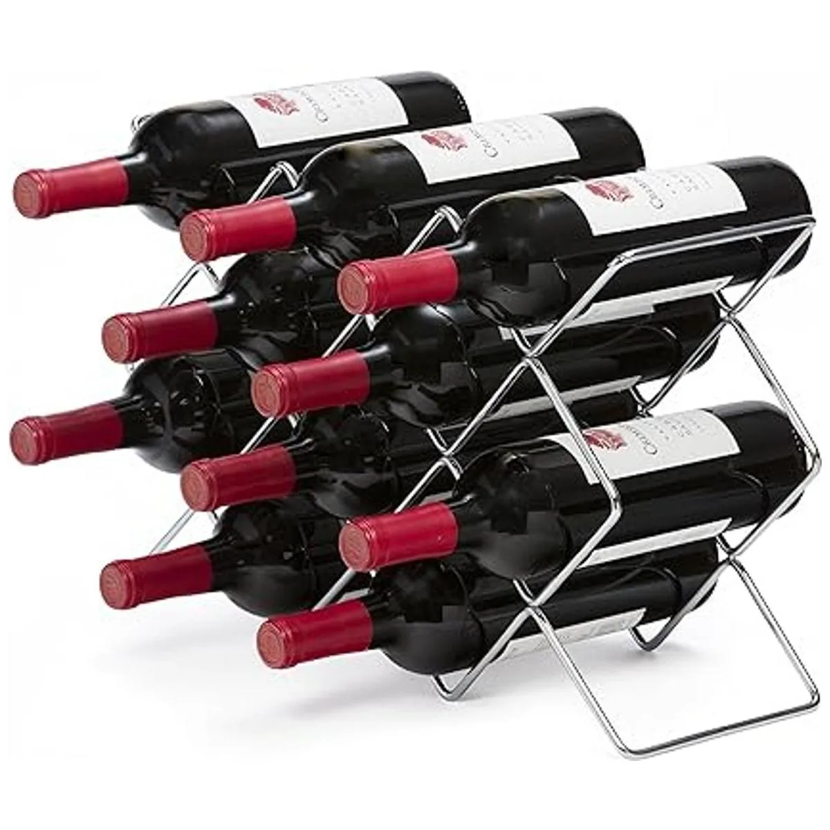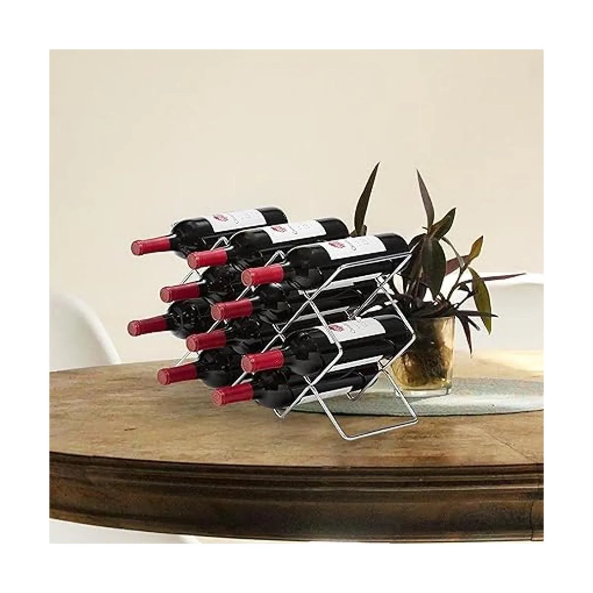 Almacenamiento: capacidad para hasta 10 botellas de vino de forma segura en ranuras individuales. Se puede ajustar horizontal o verticalmente para personalizar tu espacio de almacenamiento en tu cocina, bodega o bar