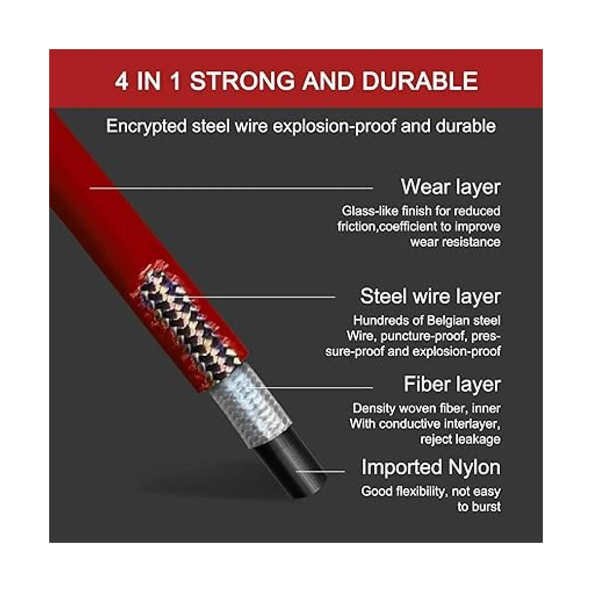 Peso ligero, flexible, más del 10 ligero, aumenta la flexibilidad de la manguera, mejora la disponibilidad de pulverización bajo presión.