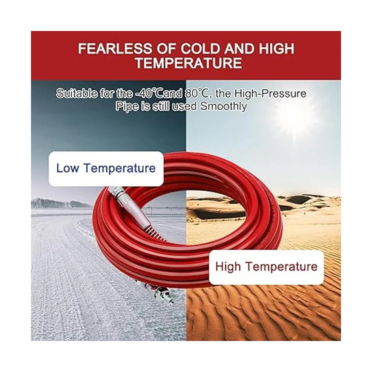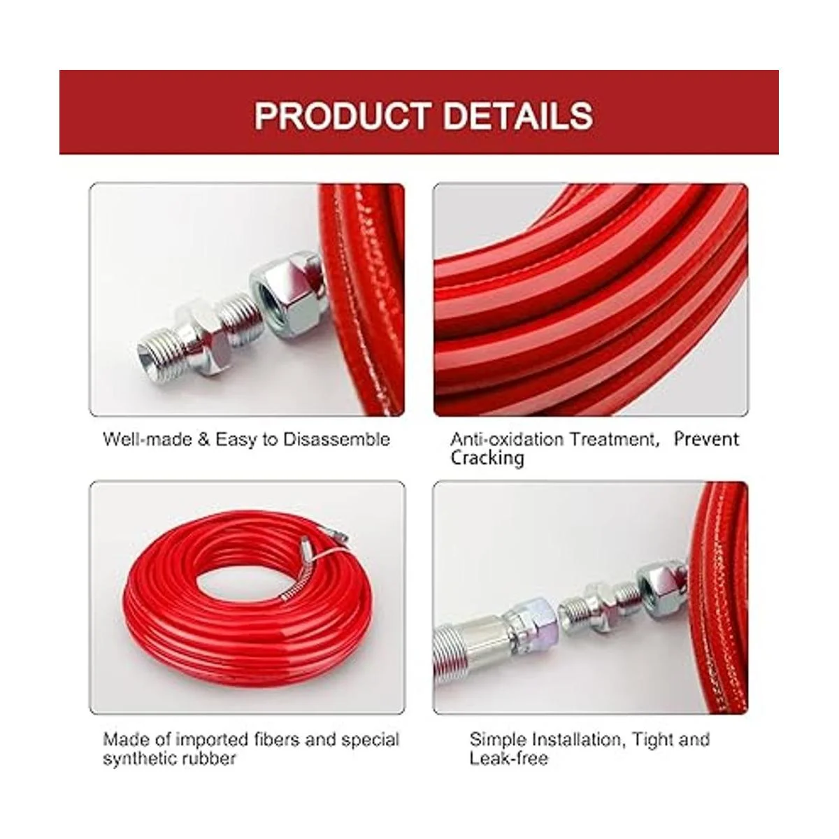 Manguera de pulverización de pintura sin aire de 25 pies 14 pulgadas, tubo de fibra flexible, revestimiento de pintura en aerosol, accesorios de látex para Graco Wagner Titan Sprayer 4350 PSI rojo