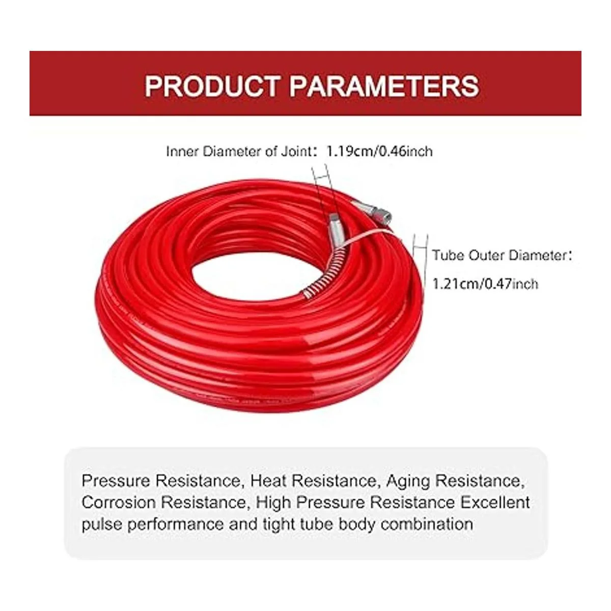 La manguera roja en aerosol sin aire es adecuada para la mayoría de pinturas arquitectónicas comunes y revestimientos a base de disolventes.