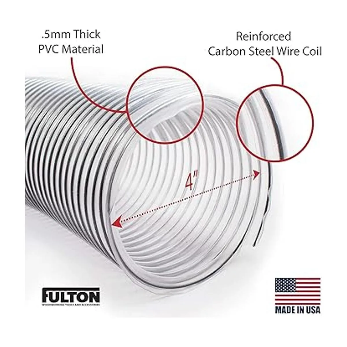 Manguera de recogida de residuos y humos de PVC ultra flexible de 4 pulgadas x 50 pies, fabricada en Estados Unidos