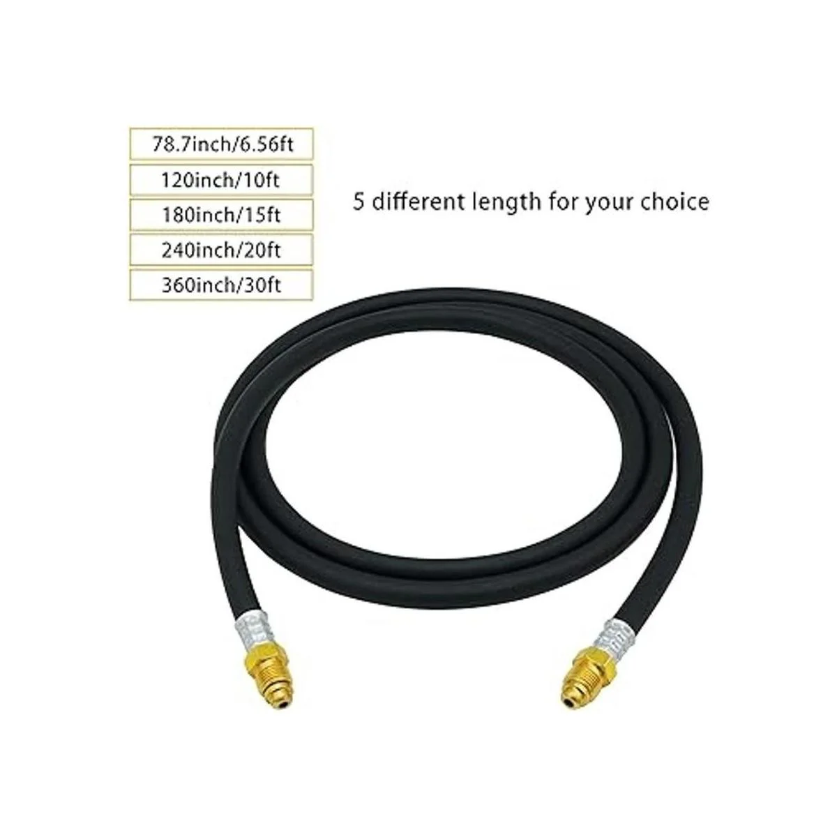 La longitud de la manguera es de 6.56 pies, crimpado estándar 5/8 UNF18RH accesorios de gas inerte en cada extremo.