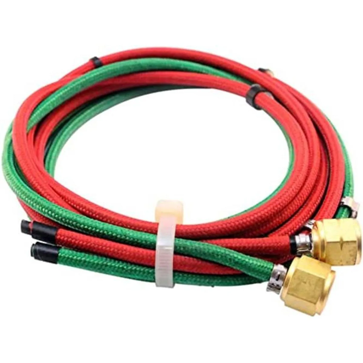Manguera doble trenzada flexible de 18 de 6 pies, color verde y rojo, repuesto para antorcha de soldadura de pequeñas joyas