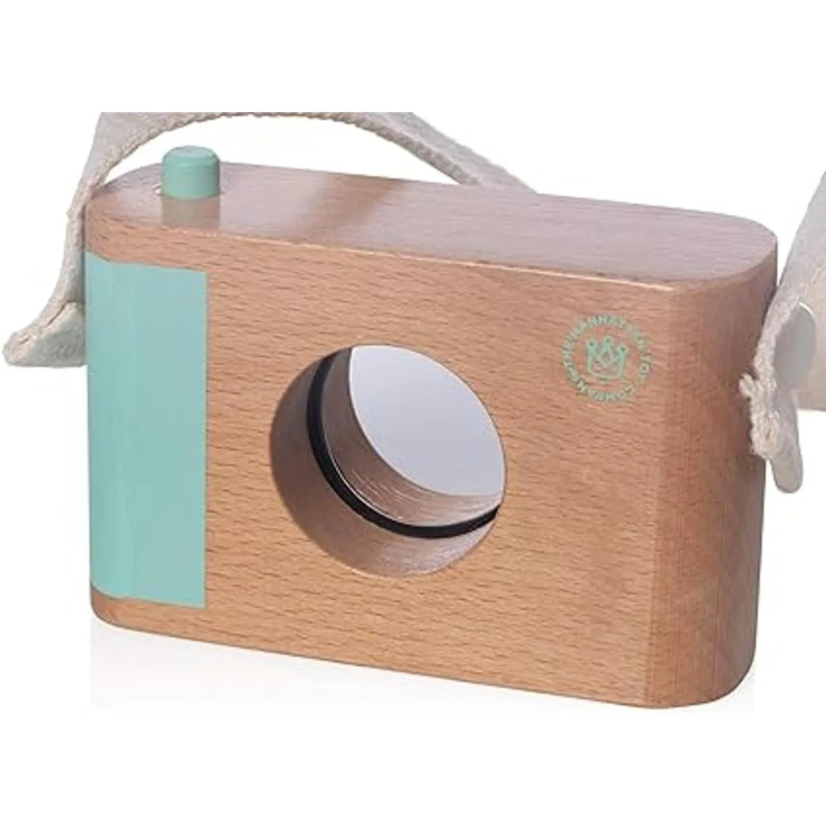 Manhattan Toy Cámara de madera natural Historian pretende jugar con lentes transparentes, verdes y caleidoscopio