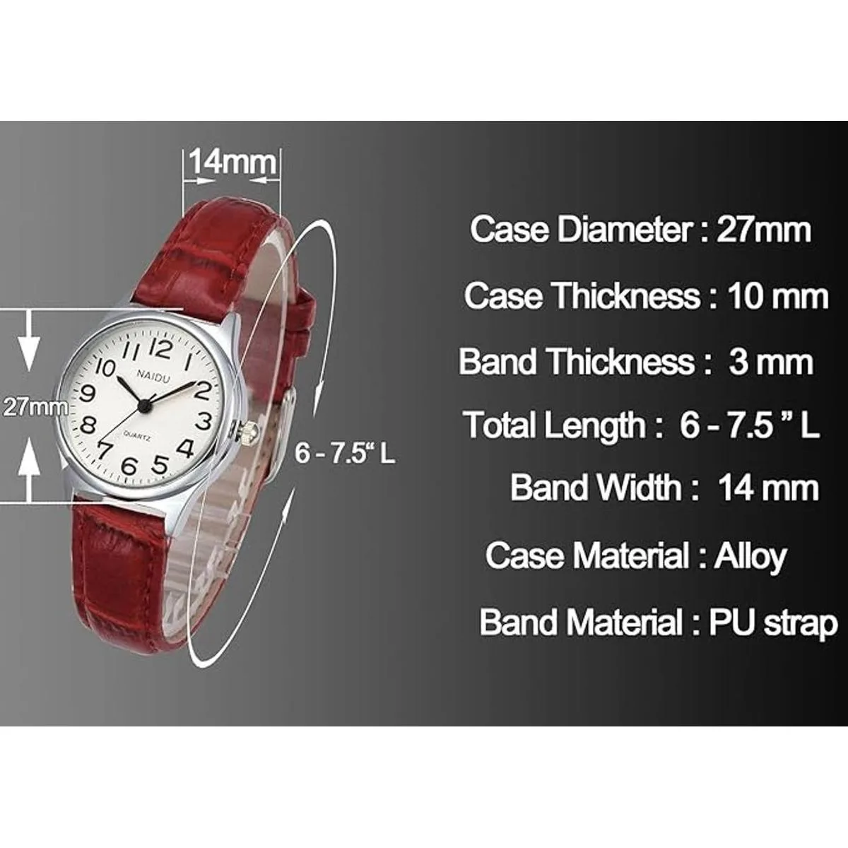Diseño: este es un reloj de estilo clásico para mujer, esfera de números arábigos con correa de piel sintética, no importa si es vestido de negocios o uso casual, es una buena opción.