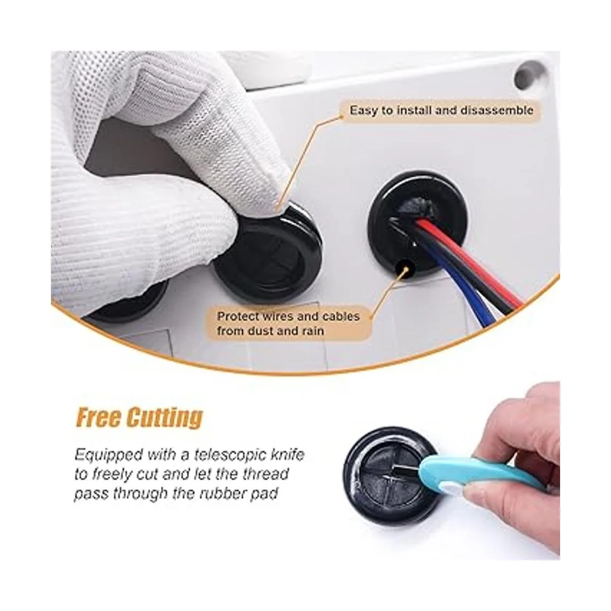 Fácil de instalar: la junta de goma negra no solo nos ayuda a resolver el problema de la gestión de cables y cables, sino que también evita que el cable y el cable toquen el metal puntiagudo y protege el cable del polvo y la lluvia. Equipamos el producto con un cuchillo retráctil de utilidad, cuando está en uso, puedes ajustar el diámetro de la junta de goma de acuerdo con el grosor de tu propio cable, y cortar libremente.