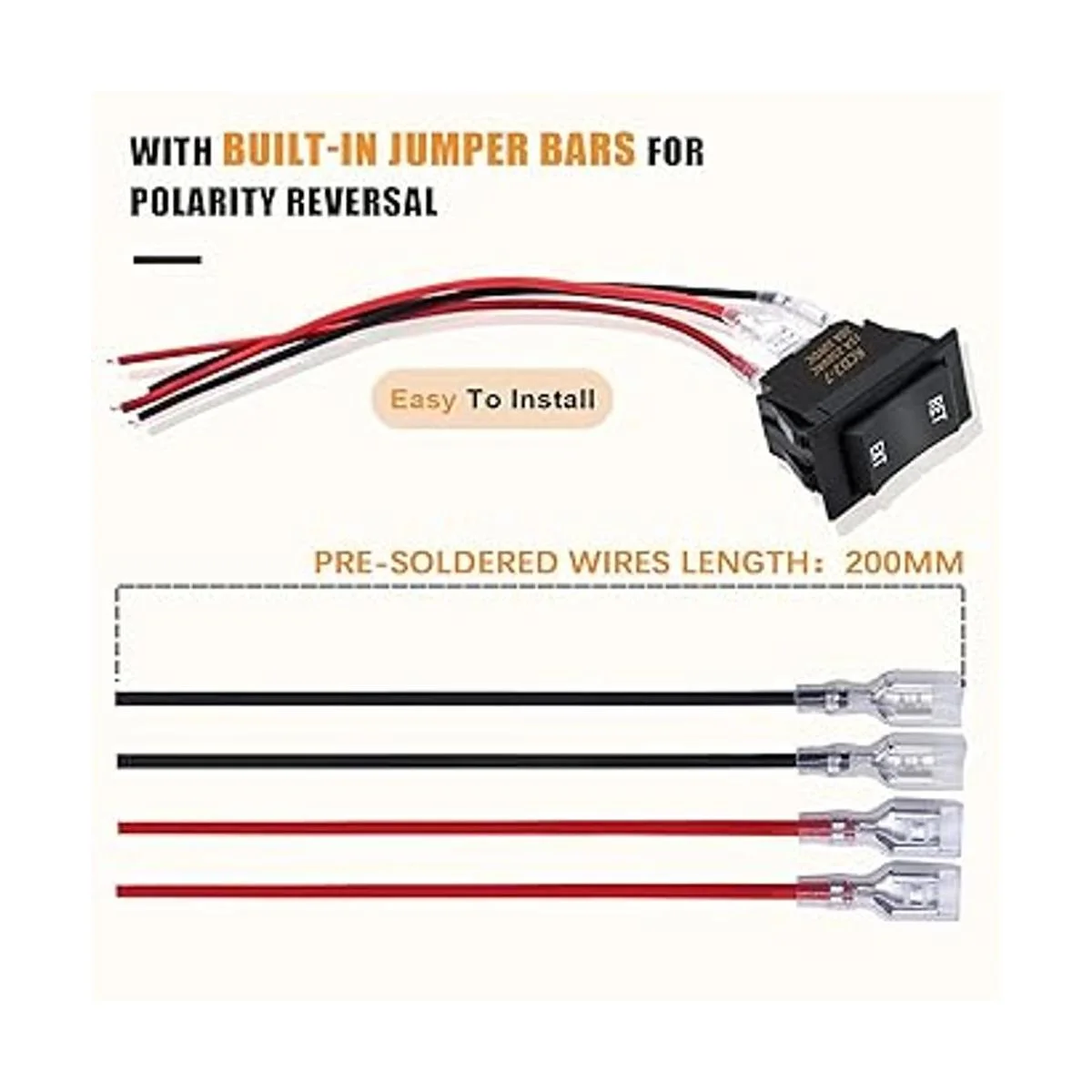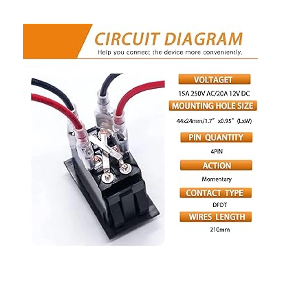 mankk Interruptor basculante momentáneo de polaridad inversa de 12 V CC 20 A 4 pines DPDT ONapagado ON Interruptor de control de motor de conector RV con cable de puente para remolque de lengua de 5 rueda KCD272234PINX
