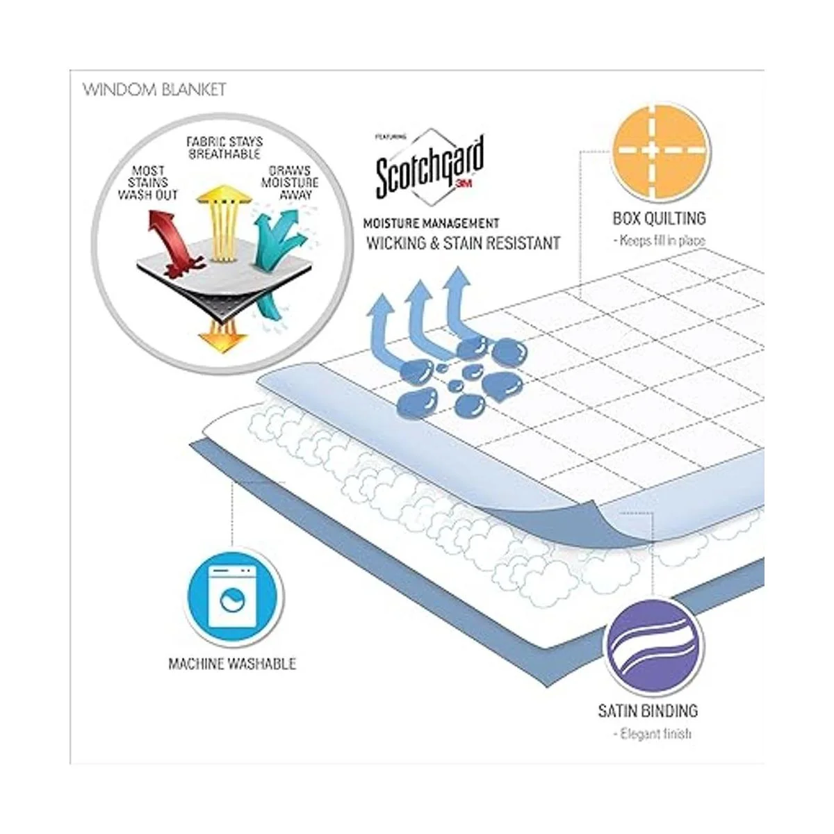 BETTER SLEEP We simply offer you a really soft and cozy high quality brushed microfiber cover. Our microfiber blanket features a 3M Scotchgard Moisture Management Treatment that wicks away moisture, keeping you warm and dry through the night. The treatment also helps most stains come out in the wash