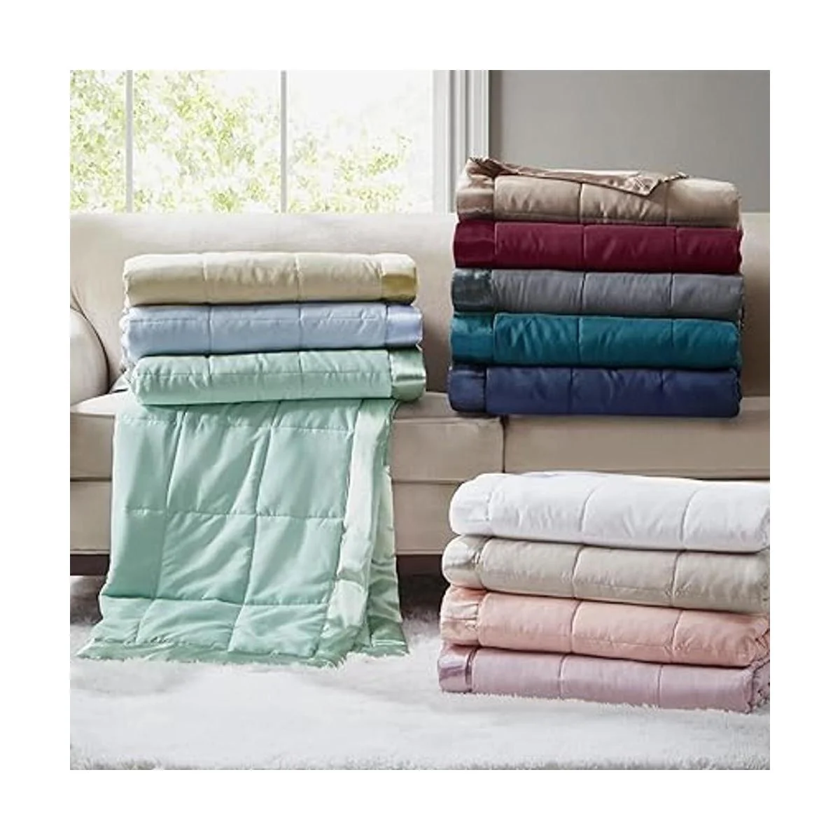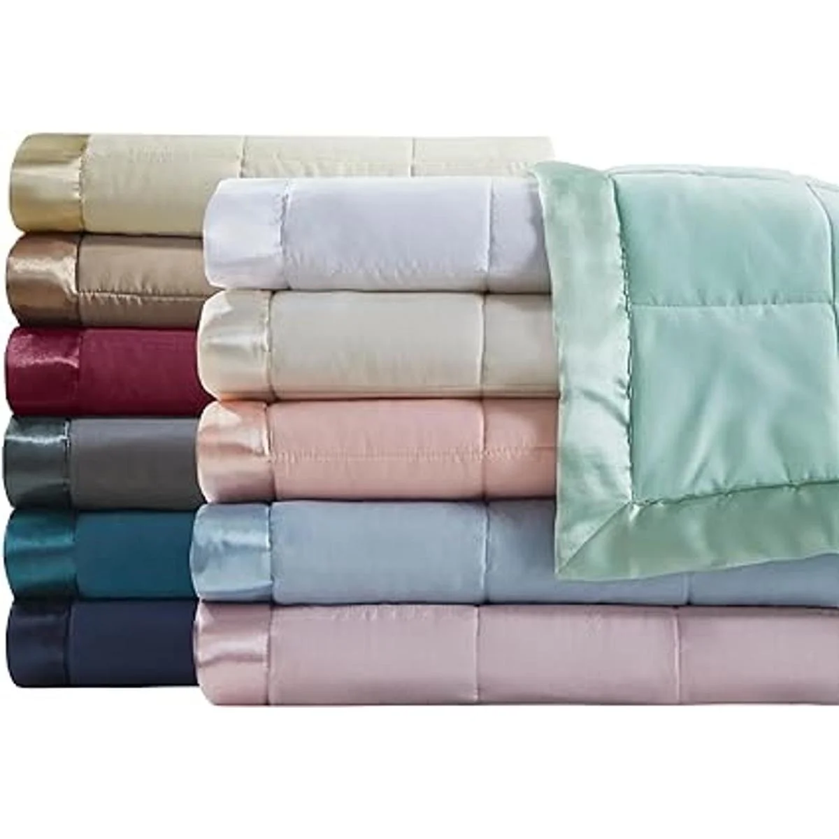 NEW TRENDY Search no further for your new cozy blanket, Windom microfiber blanket offers bold solid color complimenting the luxurious double sided box quilting design accented with satin binding. Brushed microfiber fabric offers a super soft and lofty cover to keep you warm and cozy, while still giving a lightweight and wrinkle resistant design
