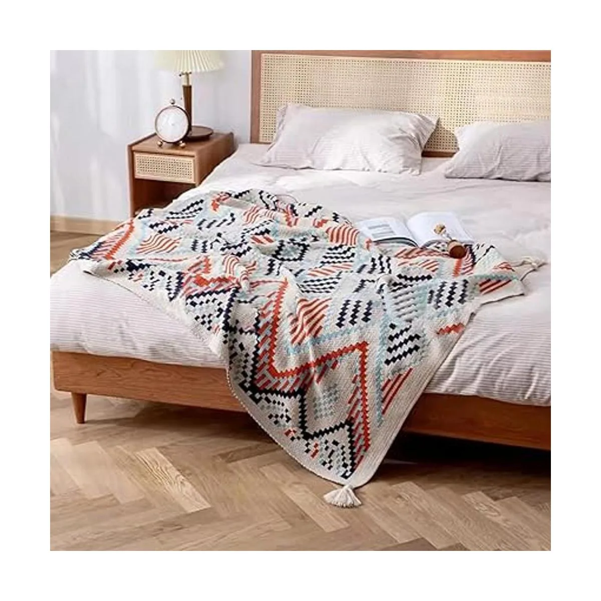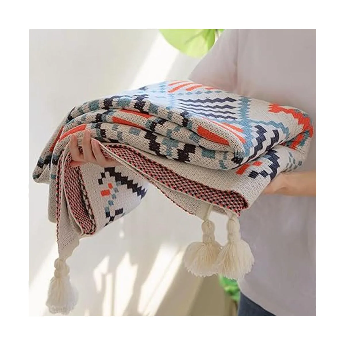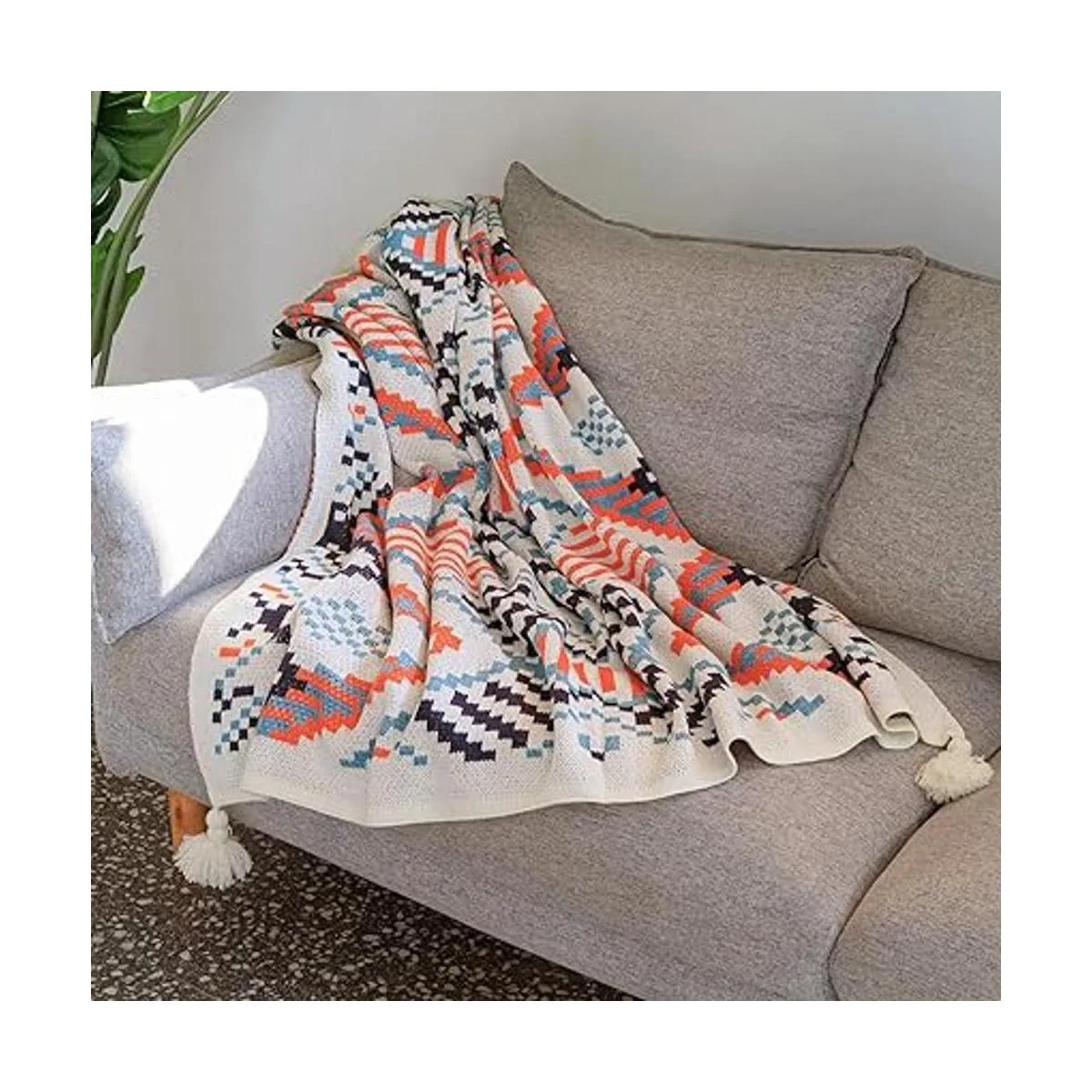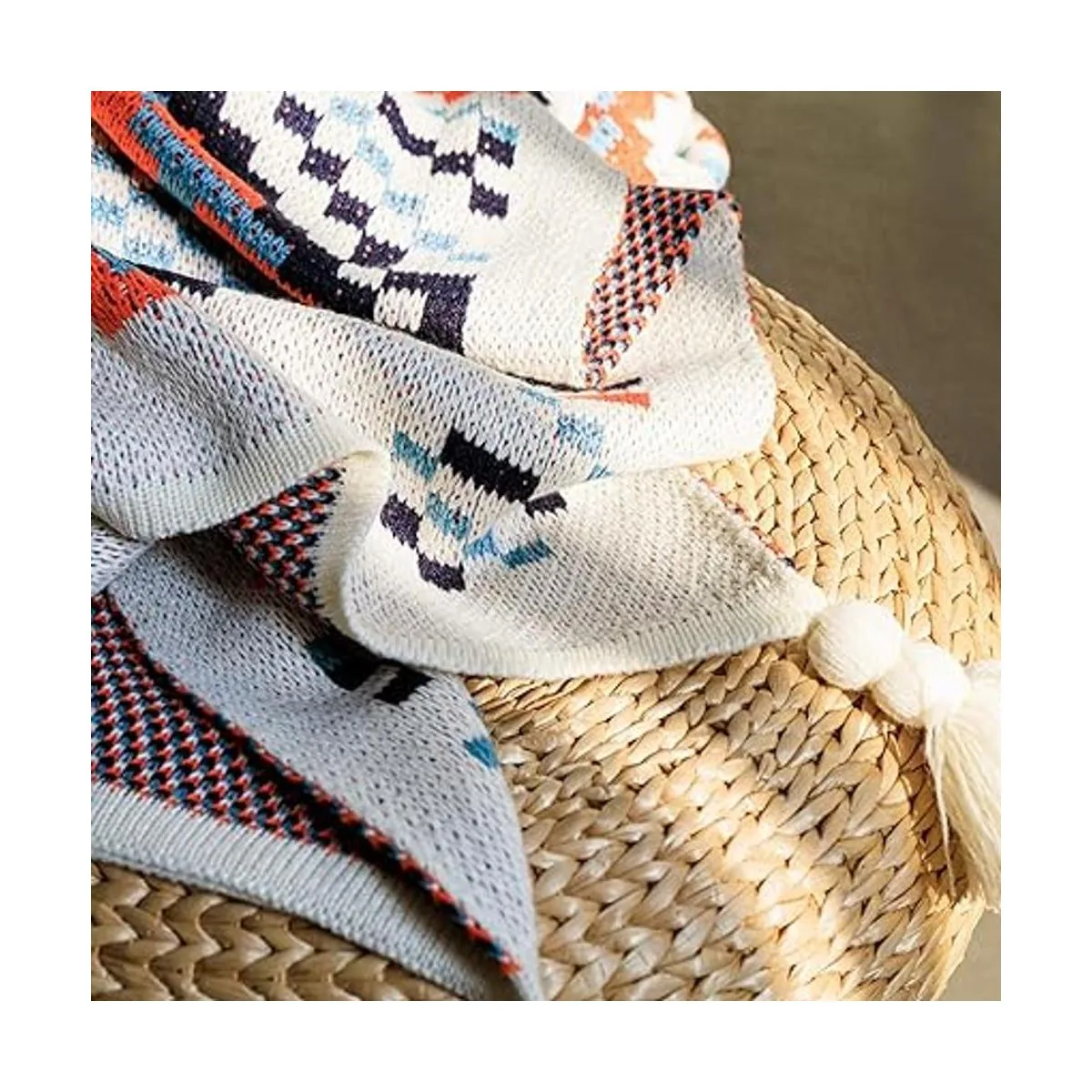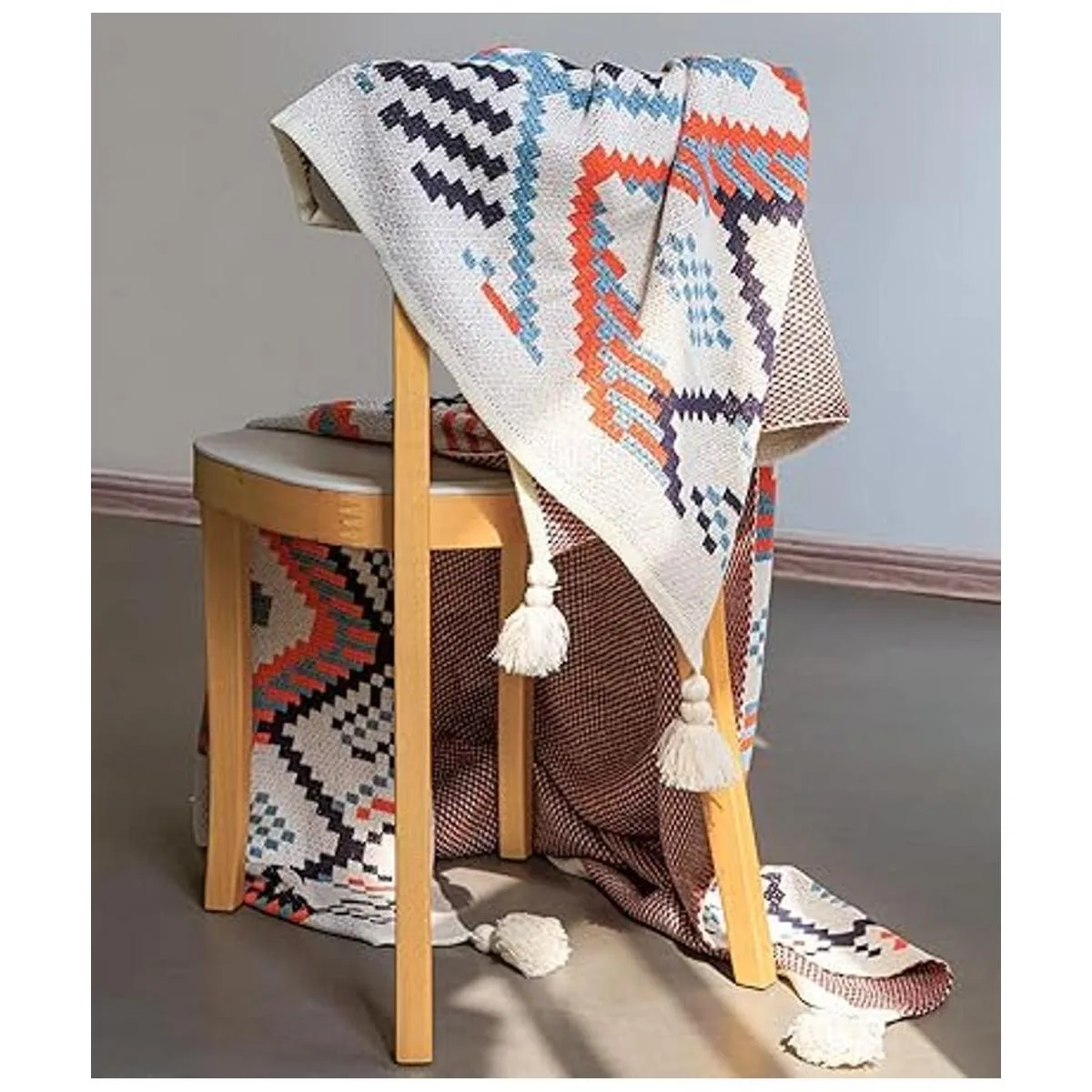 Diseño único: esta manta multicolor proporciona un bonito patrón tribal moderno tanto en la parte delantera como en la trasera. Los extremos de la manta están acabados con borlas suaves, dando a este accesorio un toque extra de textura y estilo.