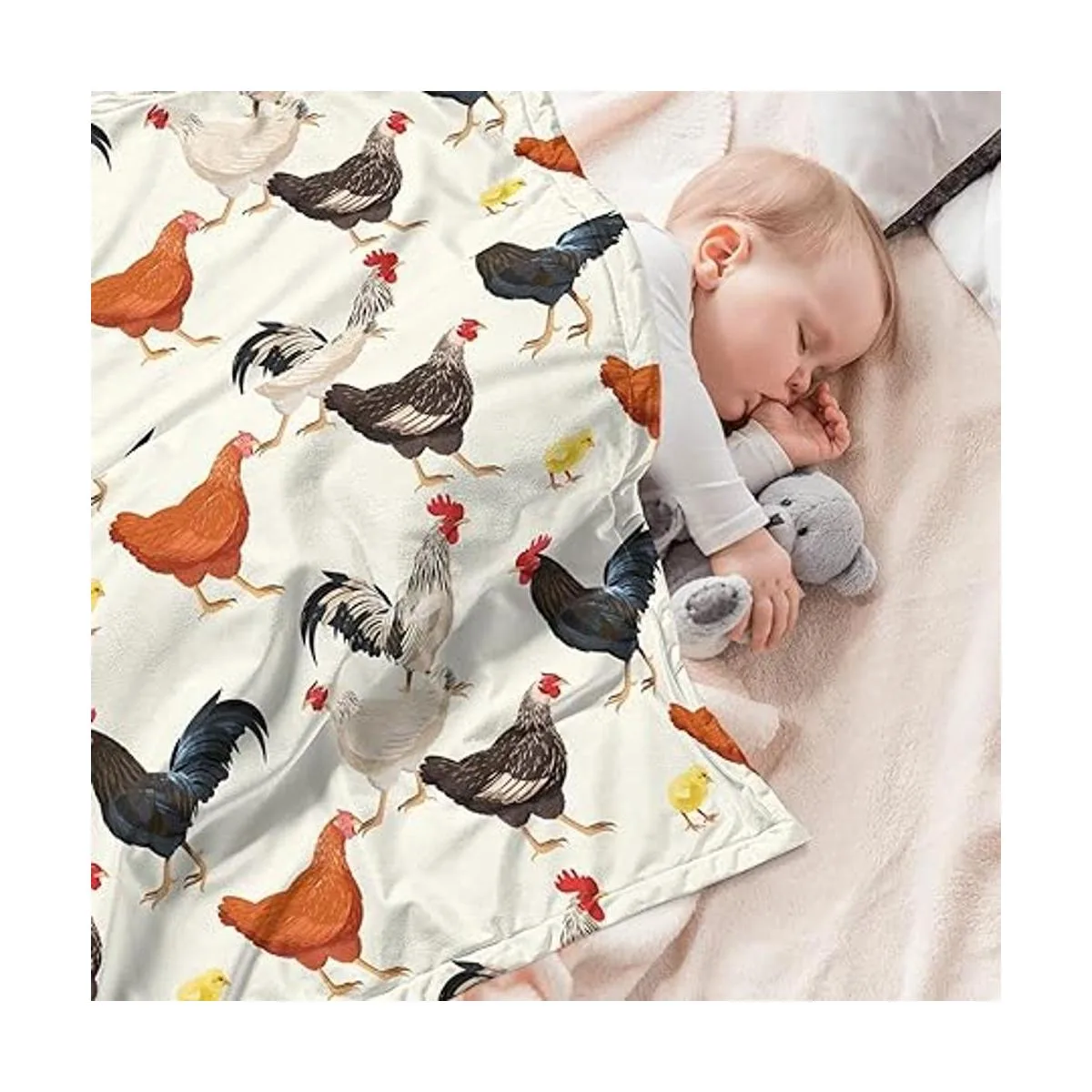 Manta con estampado de gallinas y gallos, suave y afelpada, manta decorativa de franela para sofá, sofá y cama, manta decorativa divertida de gallo, manta de bebé para todas las estaciones, 60 x 50 pulgadas