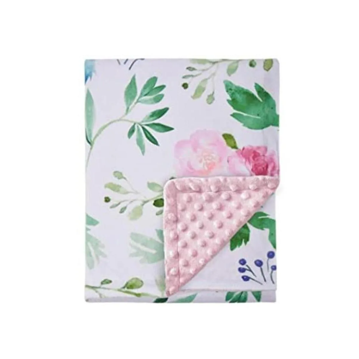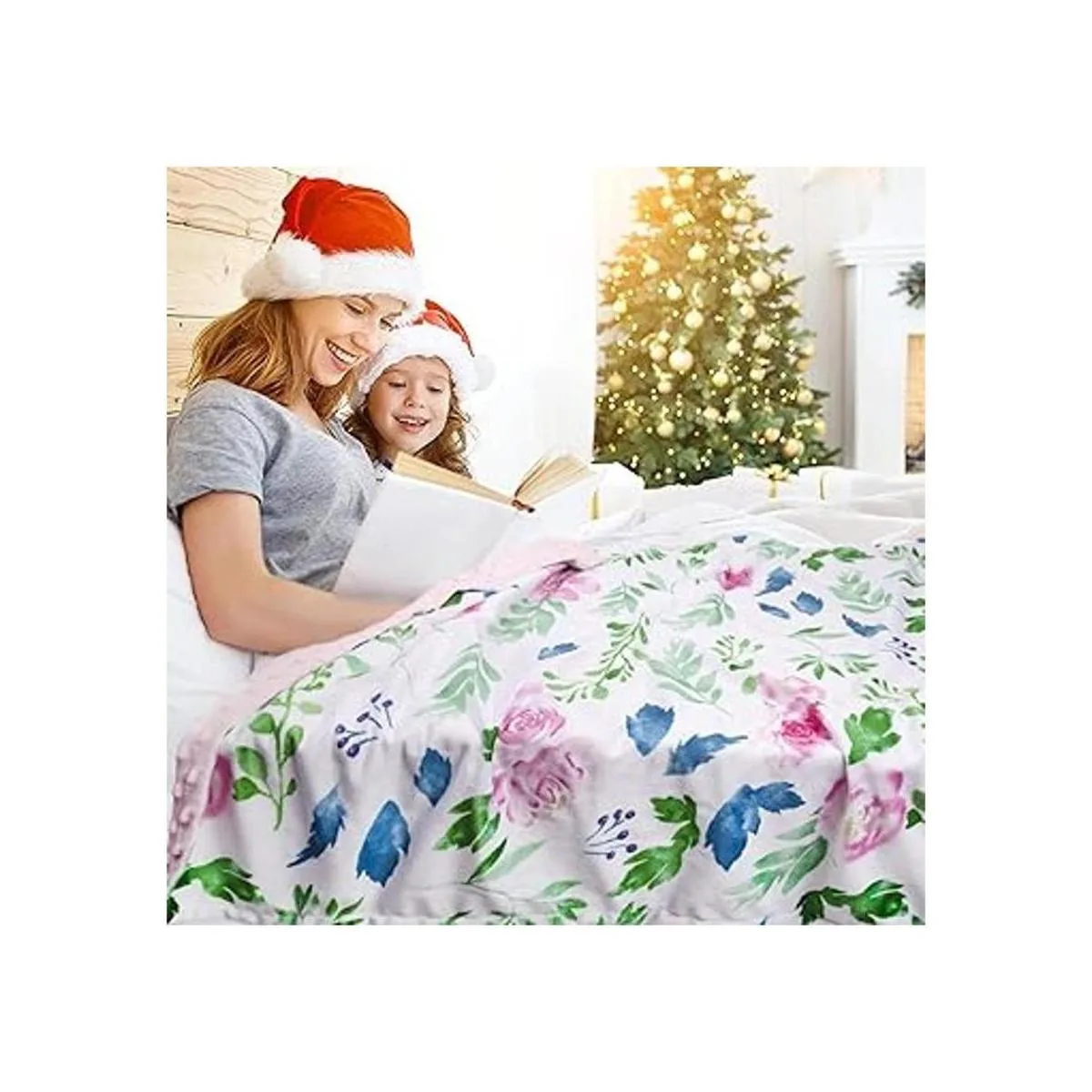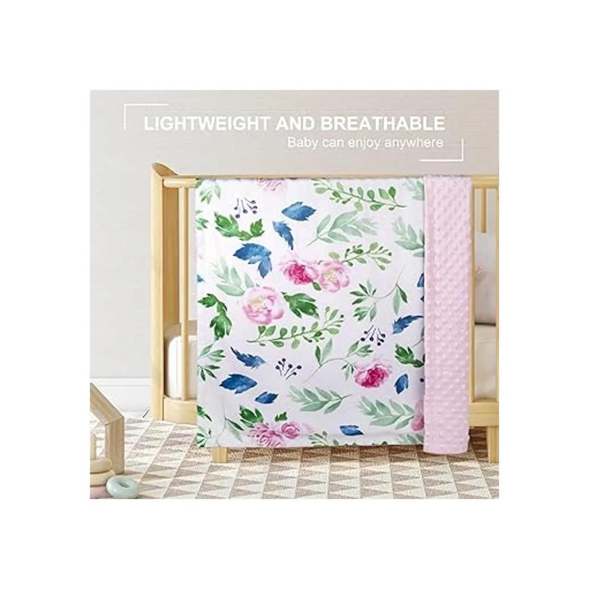 Manta de bebé para niñas súper suave de doble capa con respaldo de puntos, manta de recepción con estampado floral rosa multicolor, 30 x 40 pulgadas 29.5 x 39.4 in