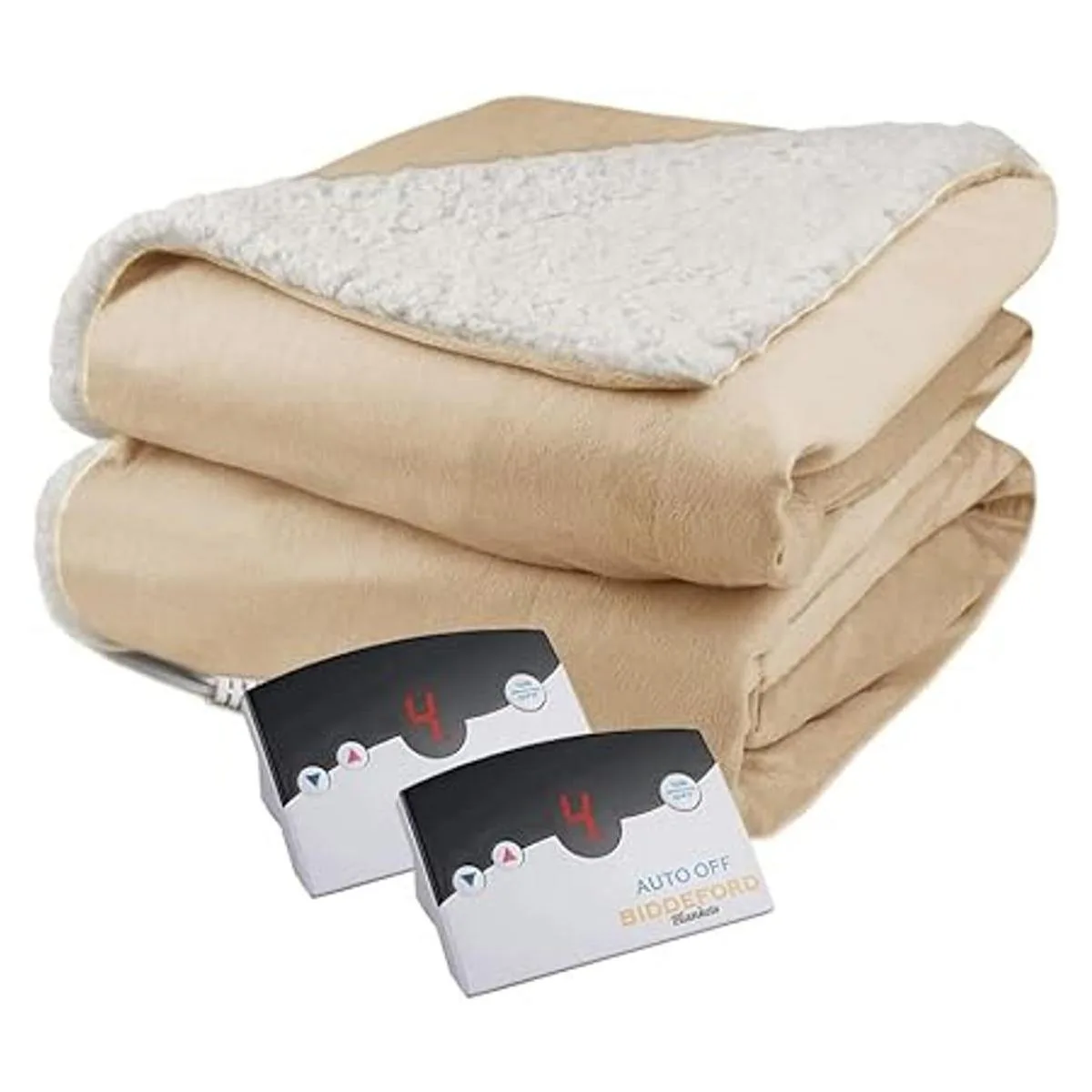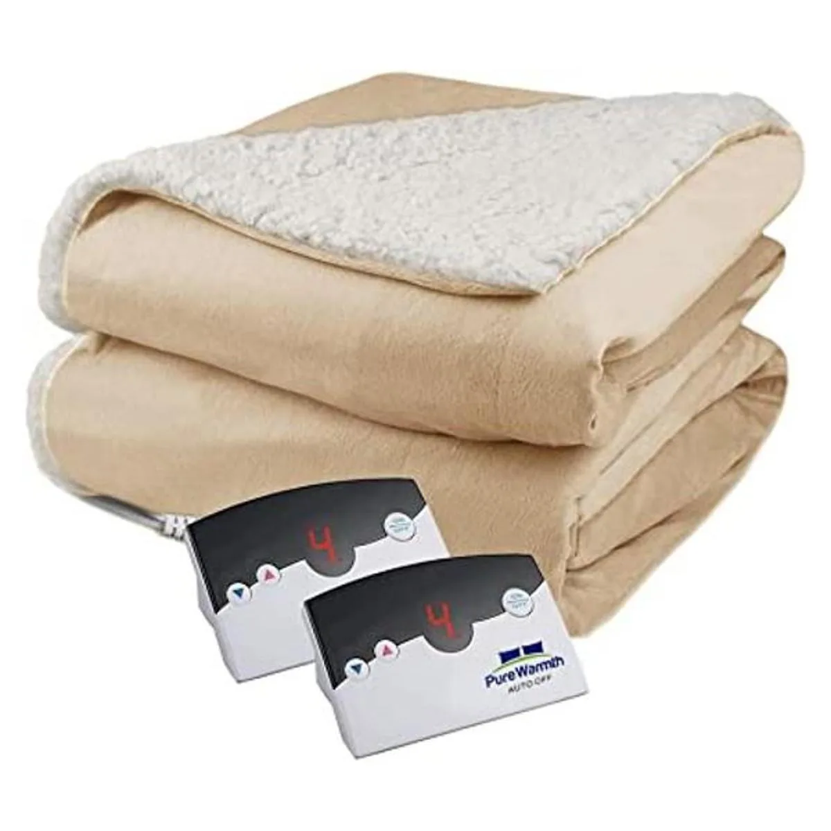 Manta de calentamiento eléctrica Sherpa de terciopelo suave y caliente, digital, lavable, apagado automático, 10 ajustes de calor