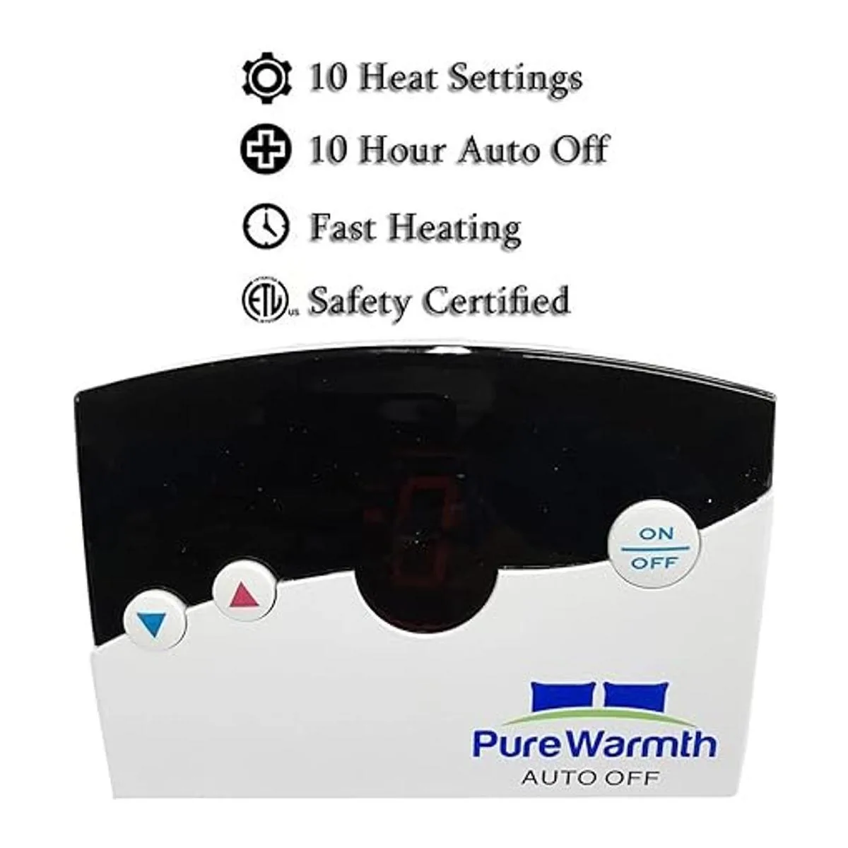 Seguridad: tecnología avanzada: el controlador incluye un temporizador de apagado automático para seguridad y fiabilidad. Todas las mantas Pure Warmth están probadas y aprobadas por un tercero 3ro UL o ETK Intertek para cumplir con las normas de seguridad de la industria.
