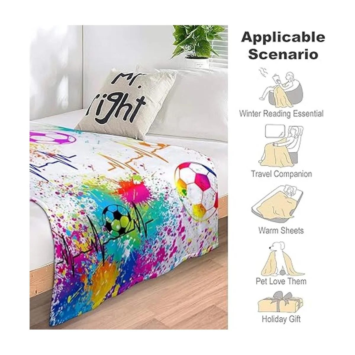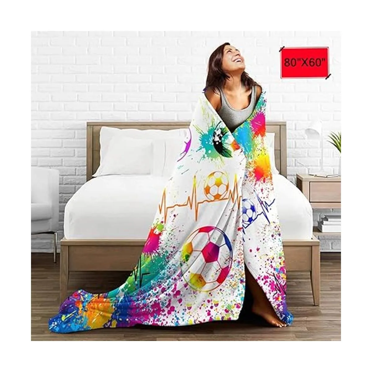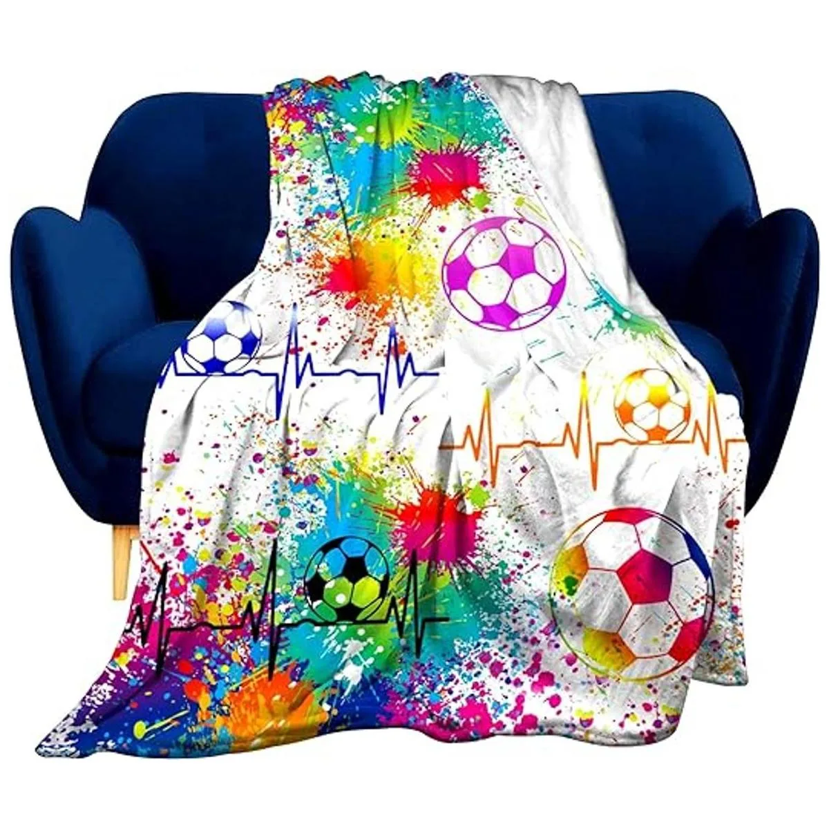 Manta de fútbol súper suave, ligera, acogedora con estampado 3D, manta de béisbol de franela para fanáticos del deporte, regalos de niños y adultos, 50 x 40 pulgadas