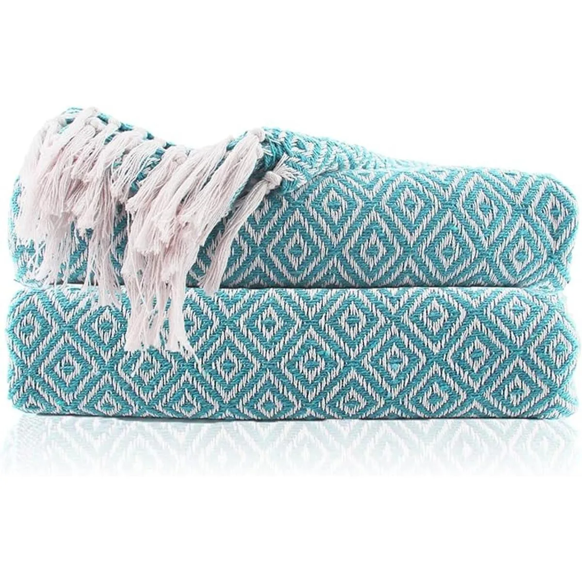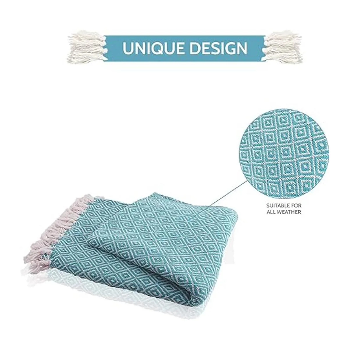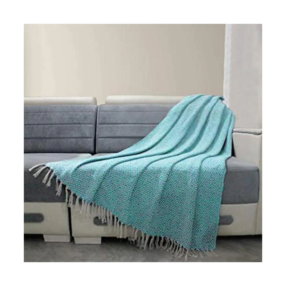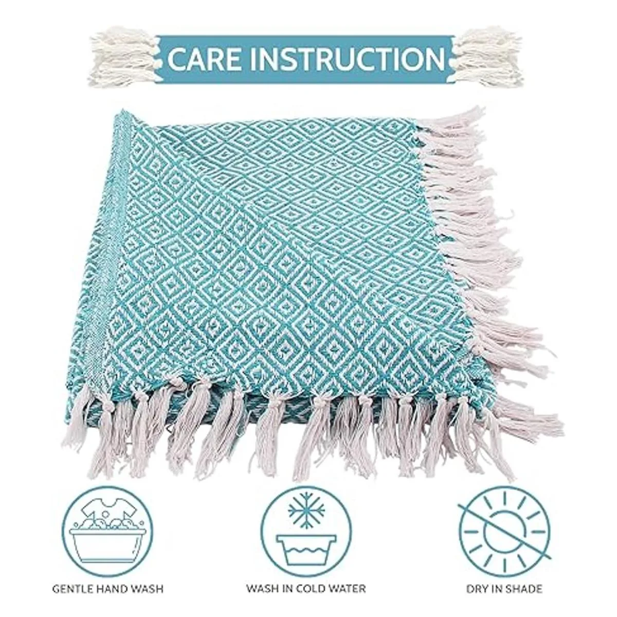 Manta de granja azul aguamarina, manta decorativa cálida súper suave de 100 algodón con borlas para sofá y sofá, 50 x 60 pulgadas