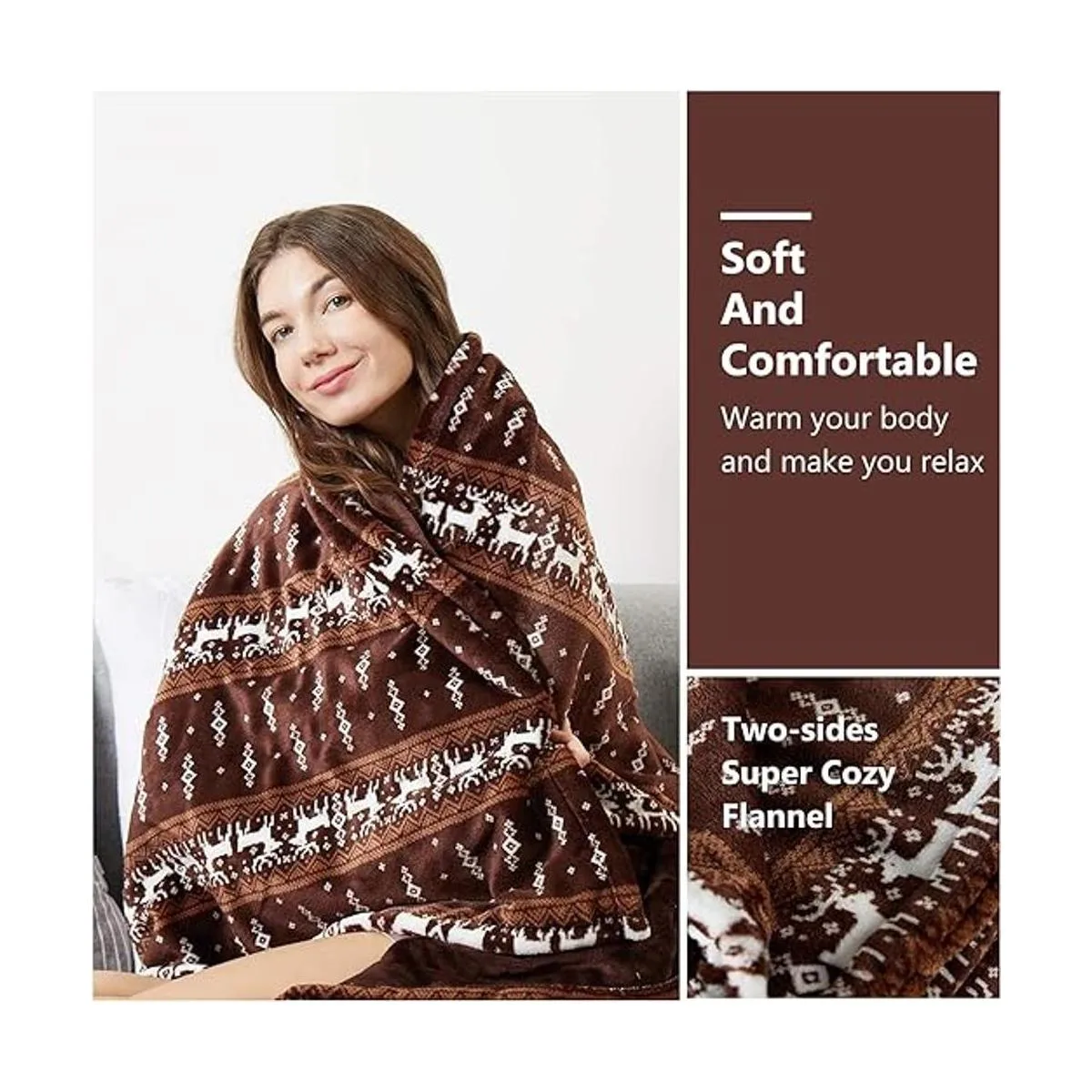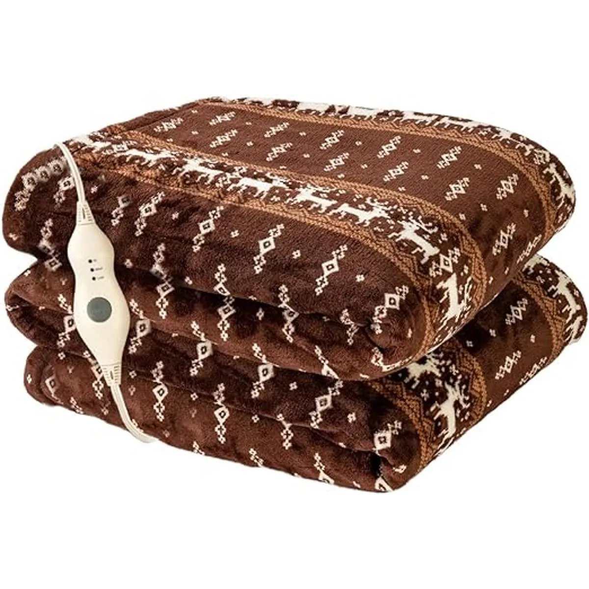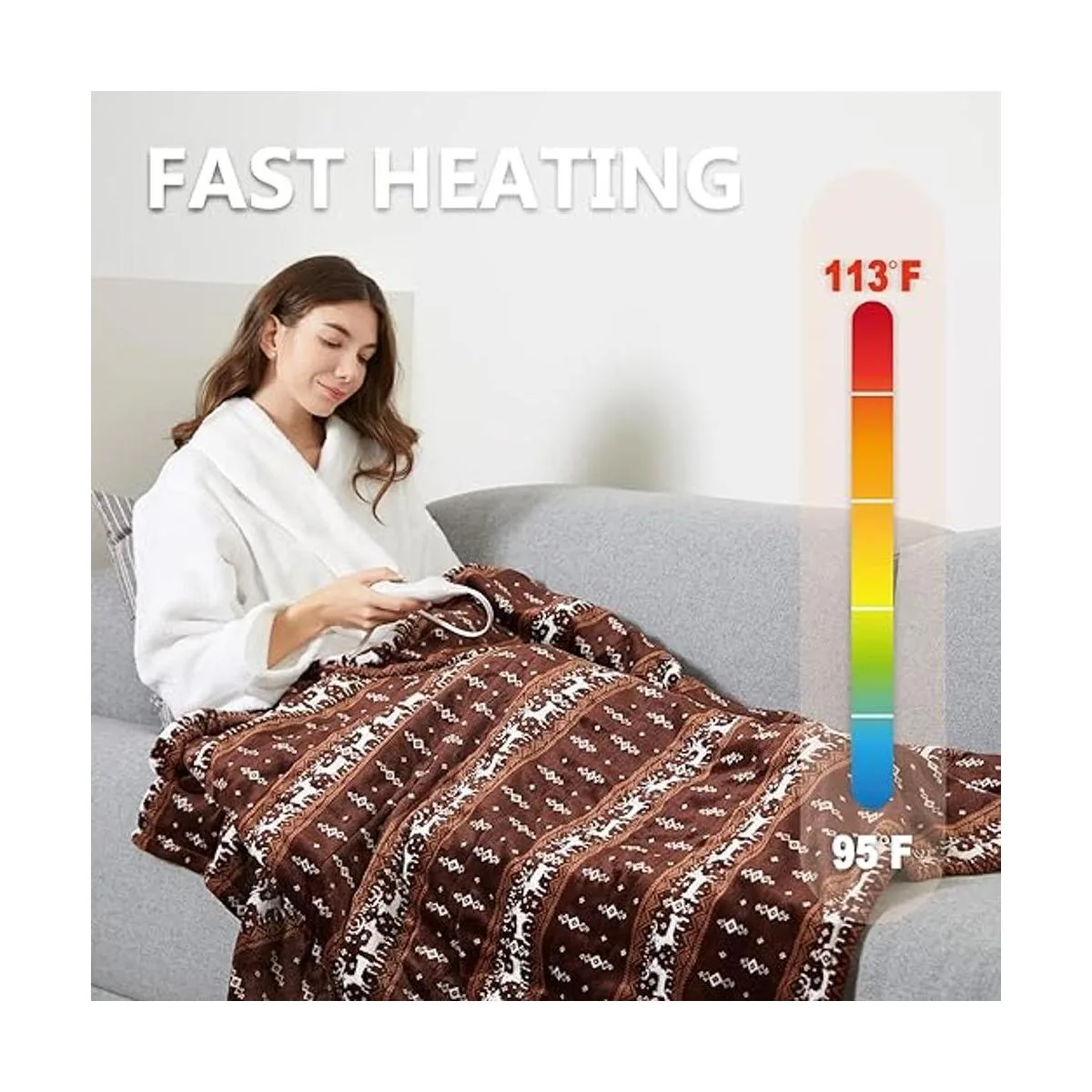 Manta eléctrica con 3 niveles de calefacción y apagado automático tras 4 horas, manta térmica suave y supercómoda con calentamiento rápido y lavable a máquina, para uso en la oficina o en casa, 50 x 60 pulgadas, patrón de alce