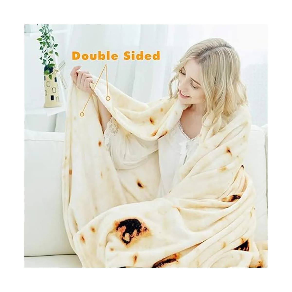 Manta gigante CASOFU con diseño de tortilla de harina, doble vista, manta para tu familia, suave y cómoda manta de franela de 285 GSM, para adultos Beige, 60 pulgadas