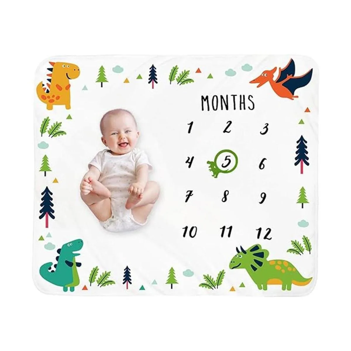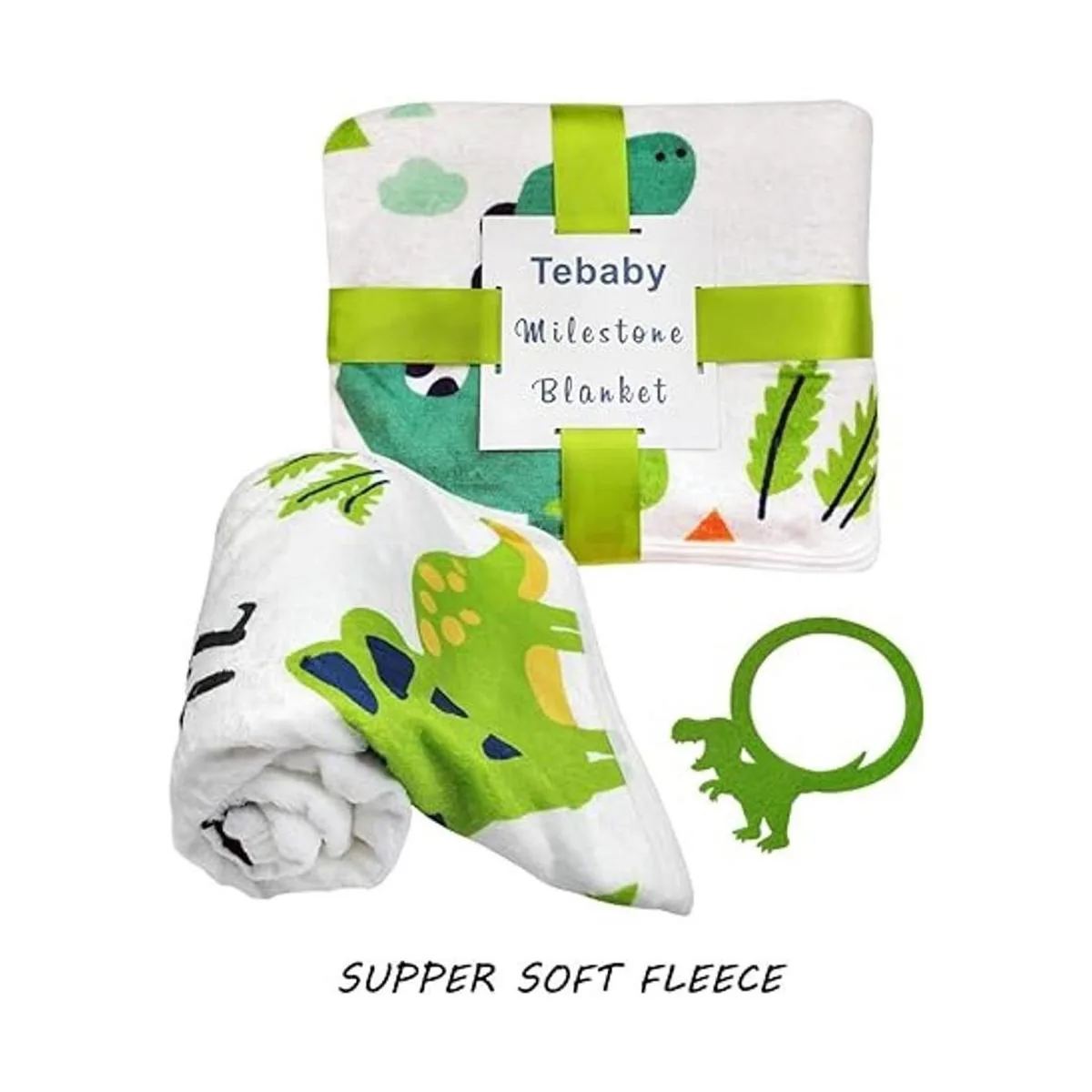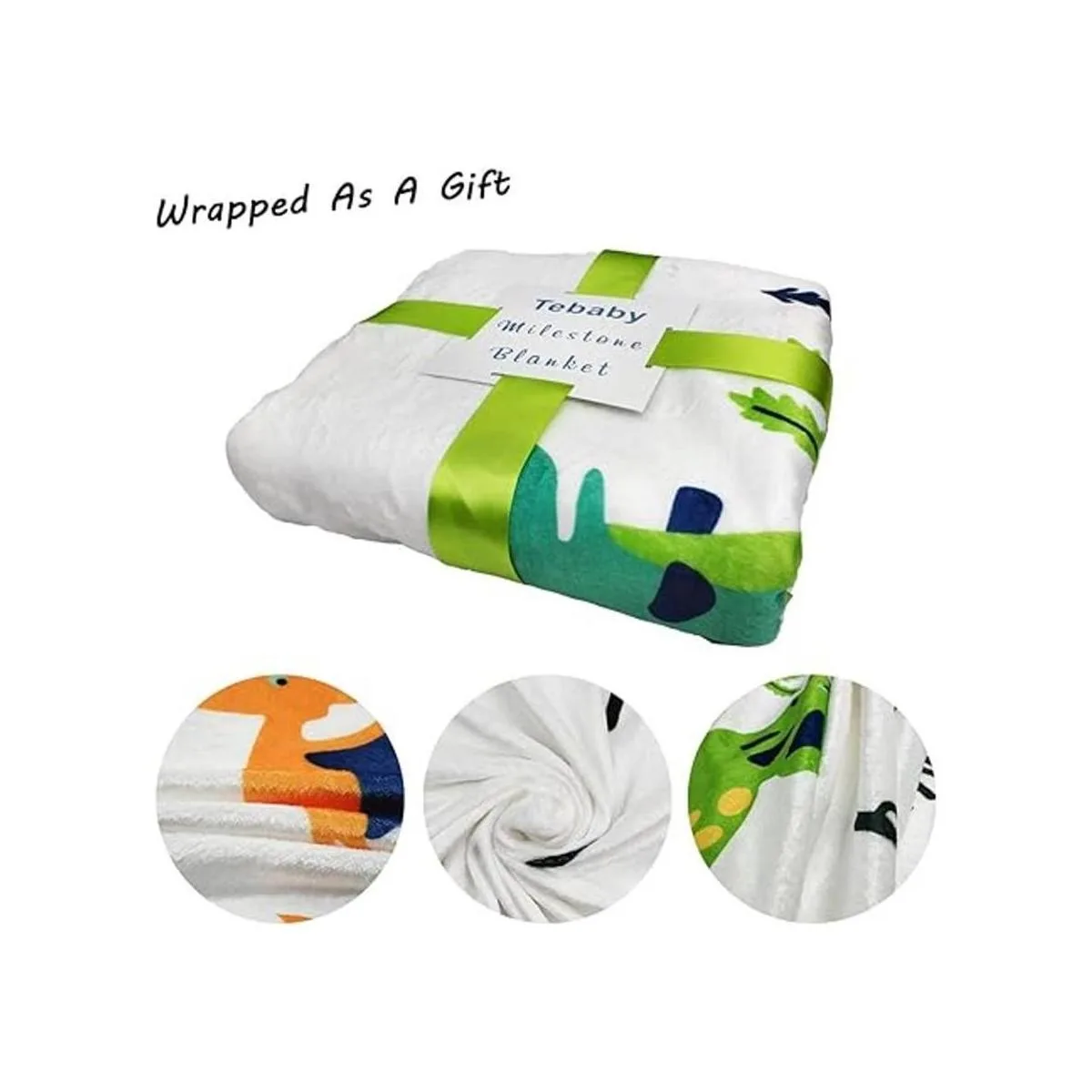 Manta mensual de hito para bebé para niño, manta de dinosaurio neutro para recién nacido para niños y niñas, regalo de ducha personalizado, forro polar de felpa suave, accesorio de fotografía con marco grande, 47 x 40 pulgadas