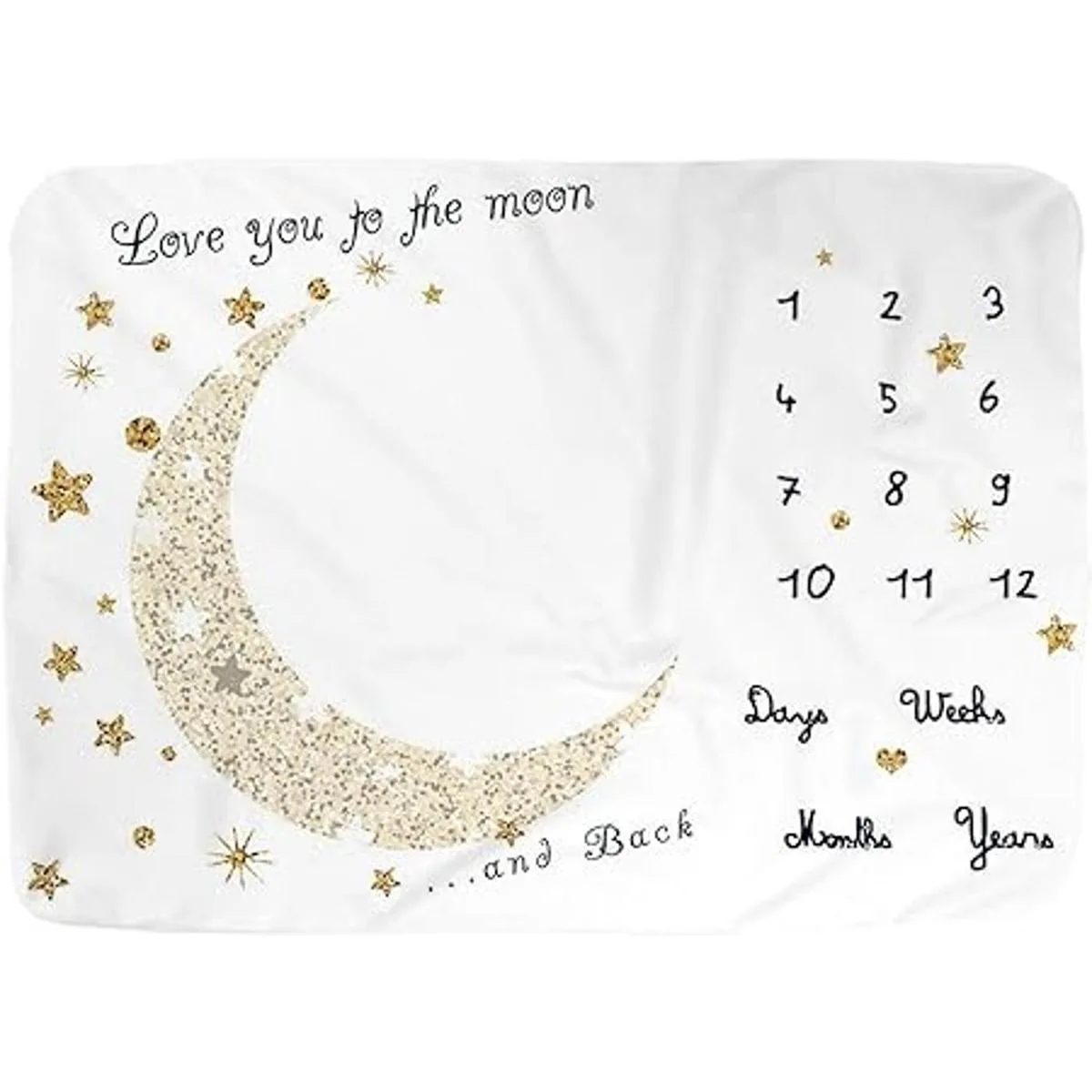 Manta mensual de hitos para bebé para niños y niñas, manta mensual para fotos de bebés, manta de fotos de bebé para recién nacido luna dorada, 40 x 60 pulgadas