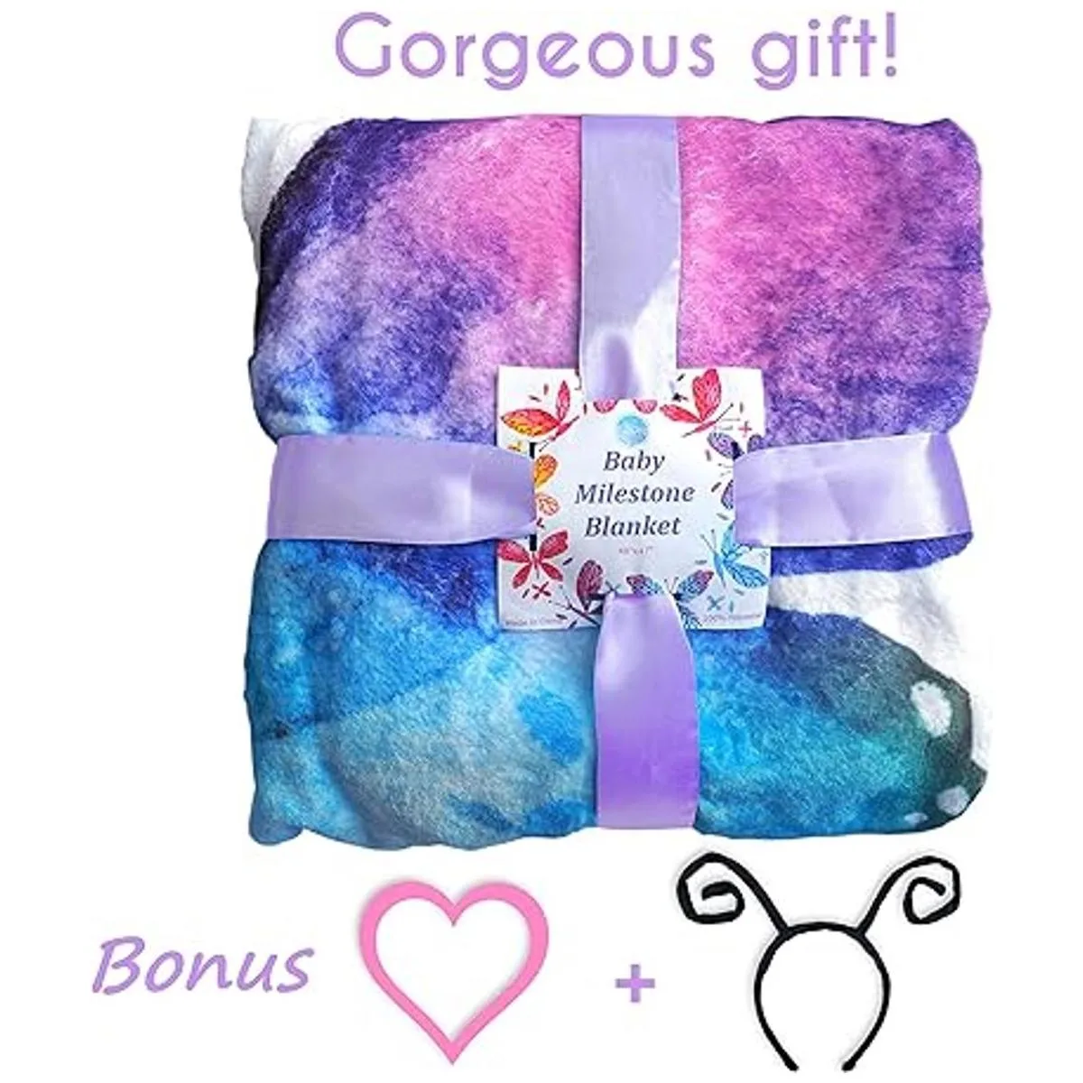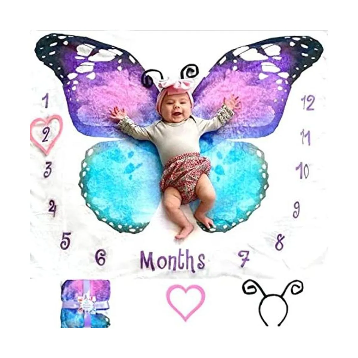 Manta mensual para bebé con diseño de hitos para niña, mariposa, meses, fotografía, telón de fondo, accesorios para niñas recién nacidas, diadema con marcador de forro polar, nuevas mamás