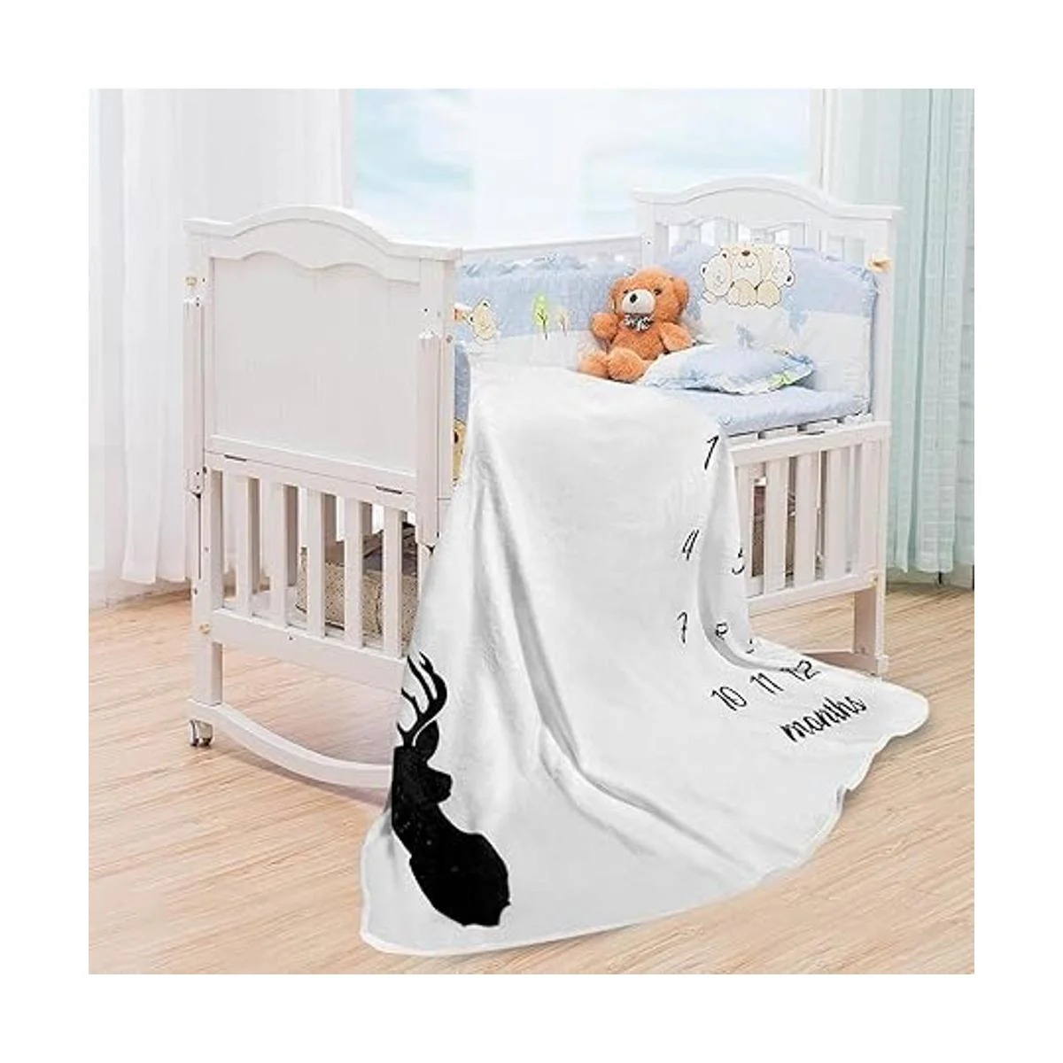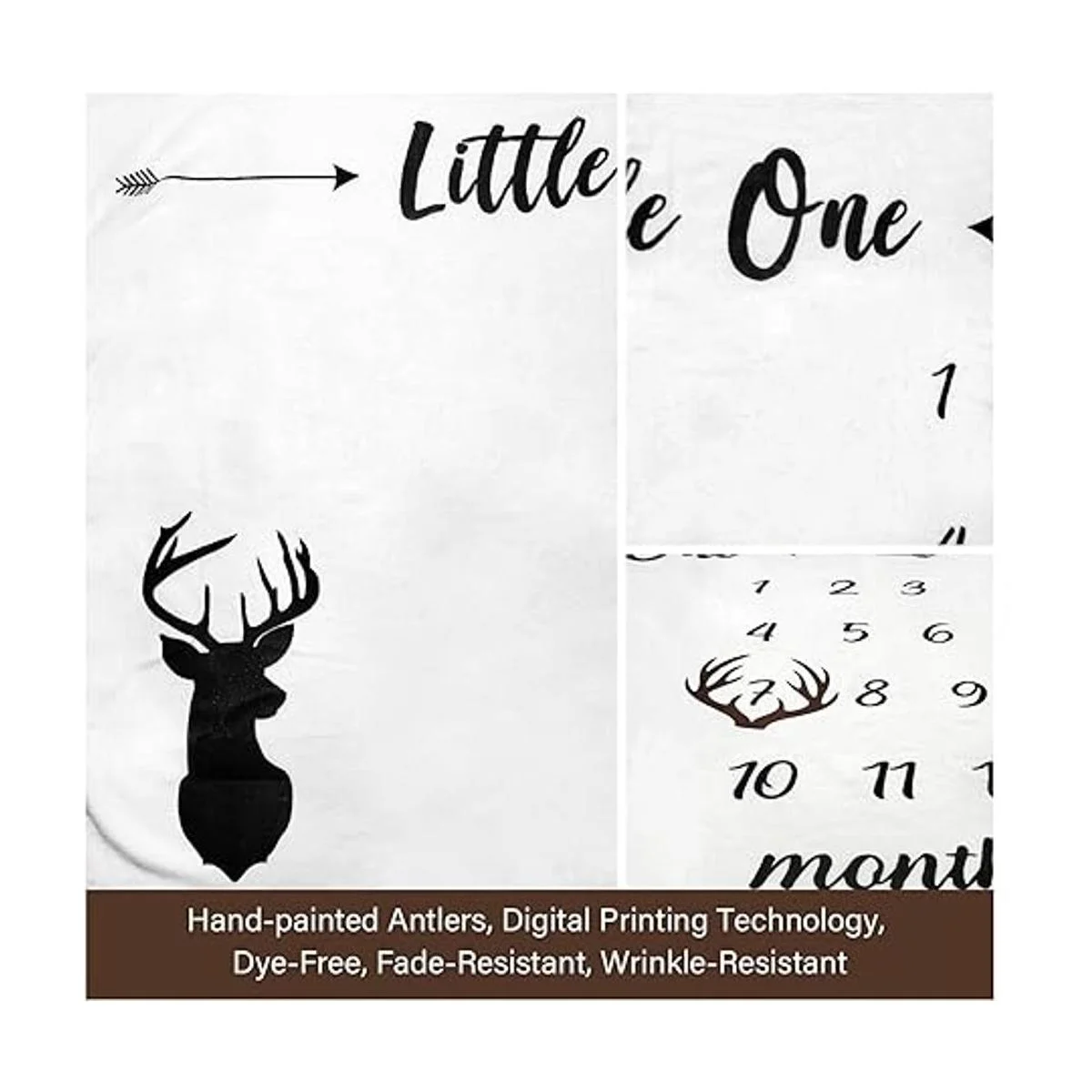 Manta mensual para bebé niño Manta para mes recién nacido, unisex, neutral, personalizable, regalo de ducha, ciervos, cuernos de guardería, decoración de fondo de fotografía con marco grande de 51 x 40 pulgadas