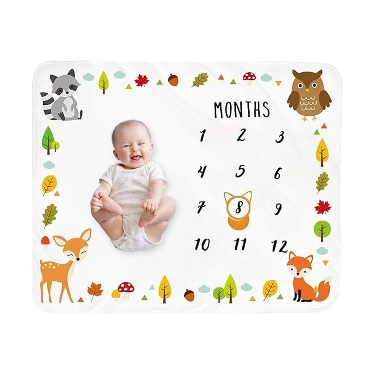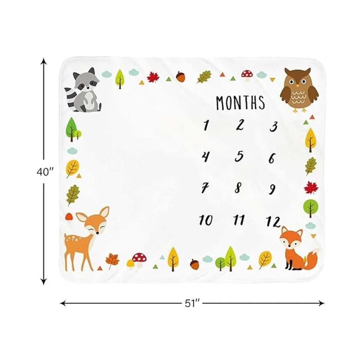 El mejor regalo para baby shower: diseñado con animales del bosque pintados a mano para una completa sesión de fotos para compartir las redes sociales. Bonito regalo para bebé niño y niña para decoración de guardería y búsqueda de registro de bebé. Esta manta de memoria personalizada puede ser fácilmente la más hermosa manta de mes y edad y completar regalos de baby shower para celebrar el cumpleaños de tu bebé y ver el crecimiento de tu bebé.