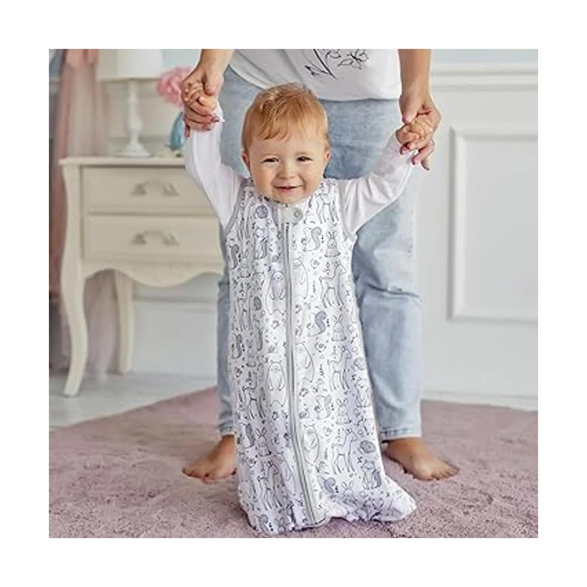 Tamaño generoso y espacioso: nuestros sacos de dormir son de tamaño generoso para adaptarse a la ropa de dormir y cuidadosamente diseñados para que la pierna del bebé pueda moverse libremente para garantizar un desarrollo adecuado de la cadera.
