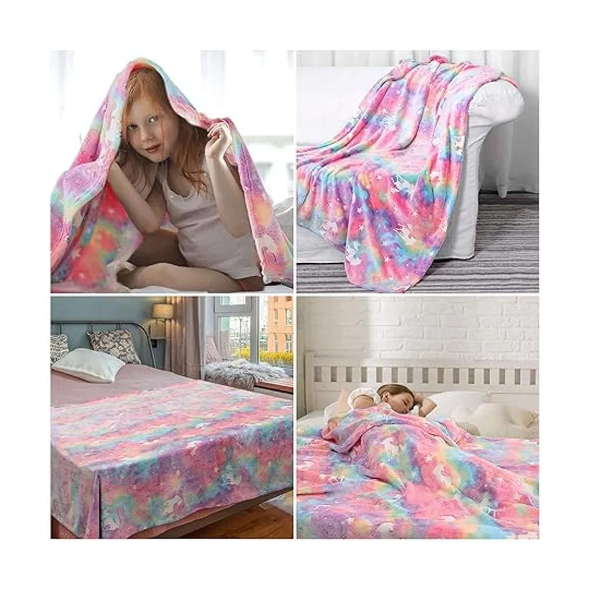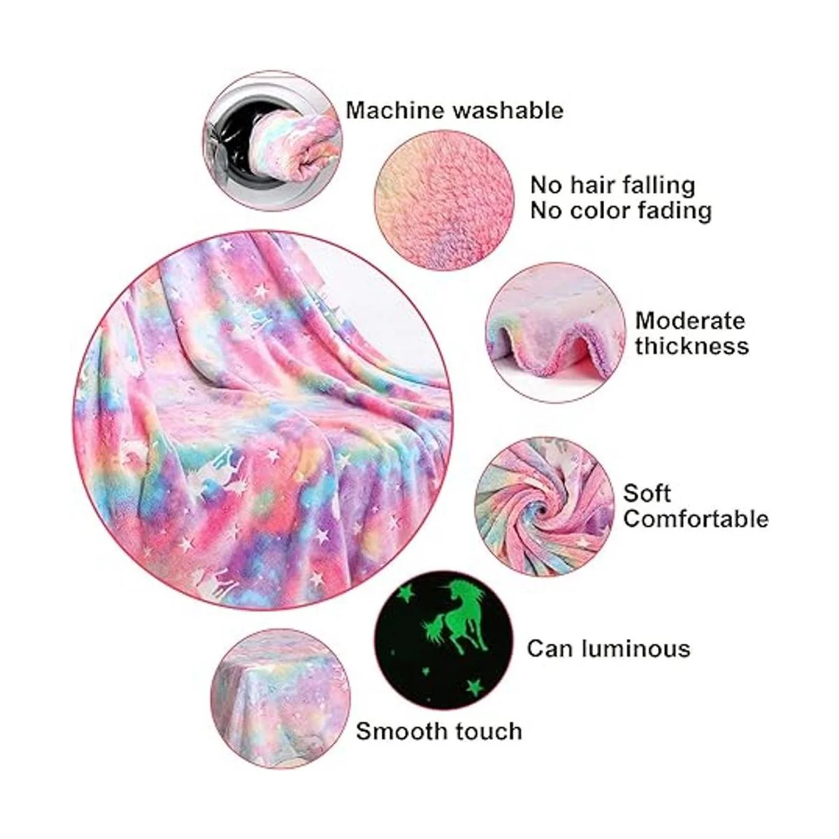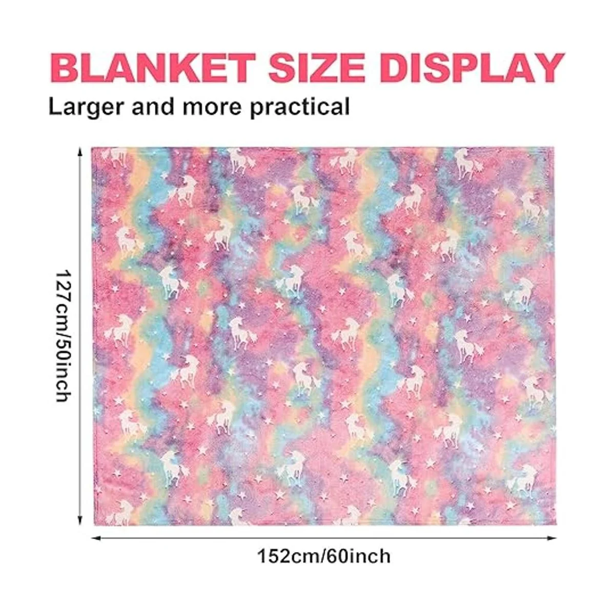 Manta que brilla en la oscuridad, regalos de unicornios para niñas, mantas de fiesta de unicornio, juguetes luminosos para niñas, mantas suaves para niños, para niñas de 1 a 10 años, cumpleaños, Navidad, Halloween, Acción de Gracias, Pascua, regalos de 60 x 50 pulgadas