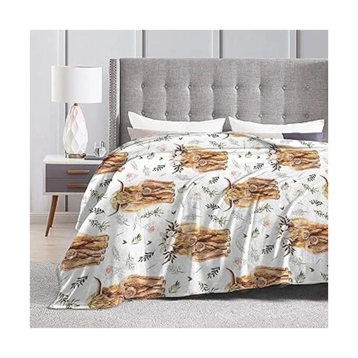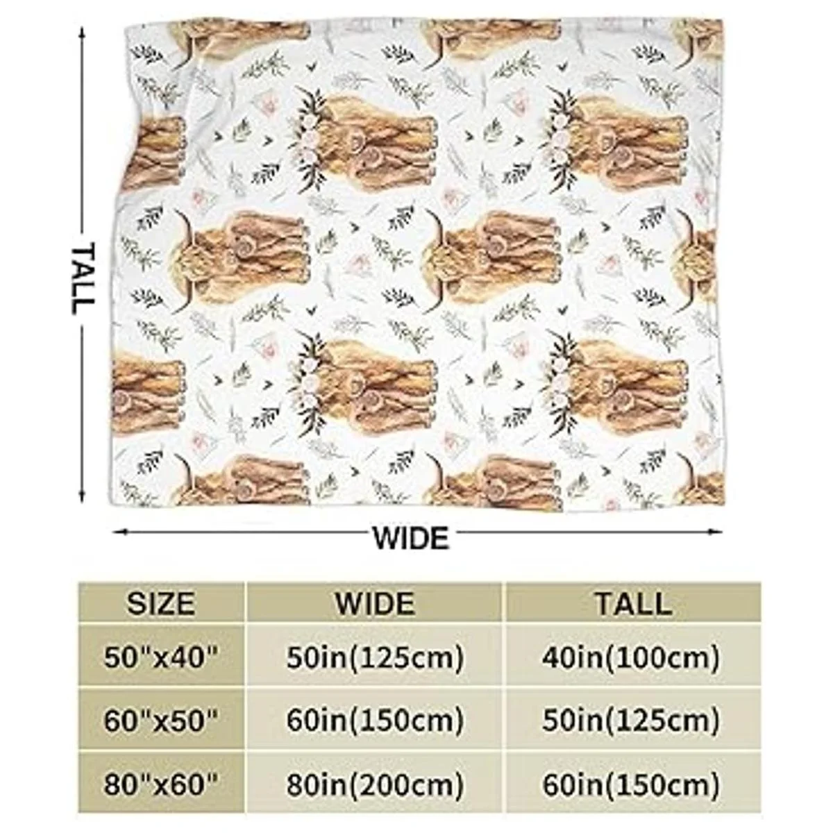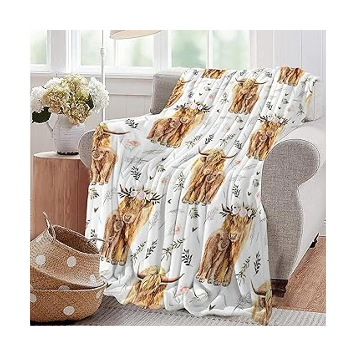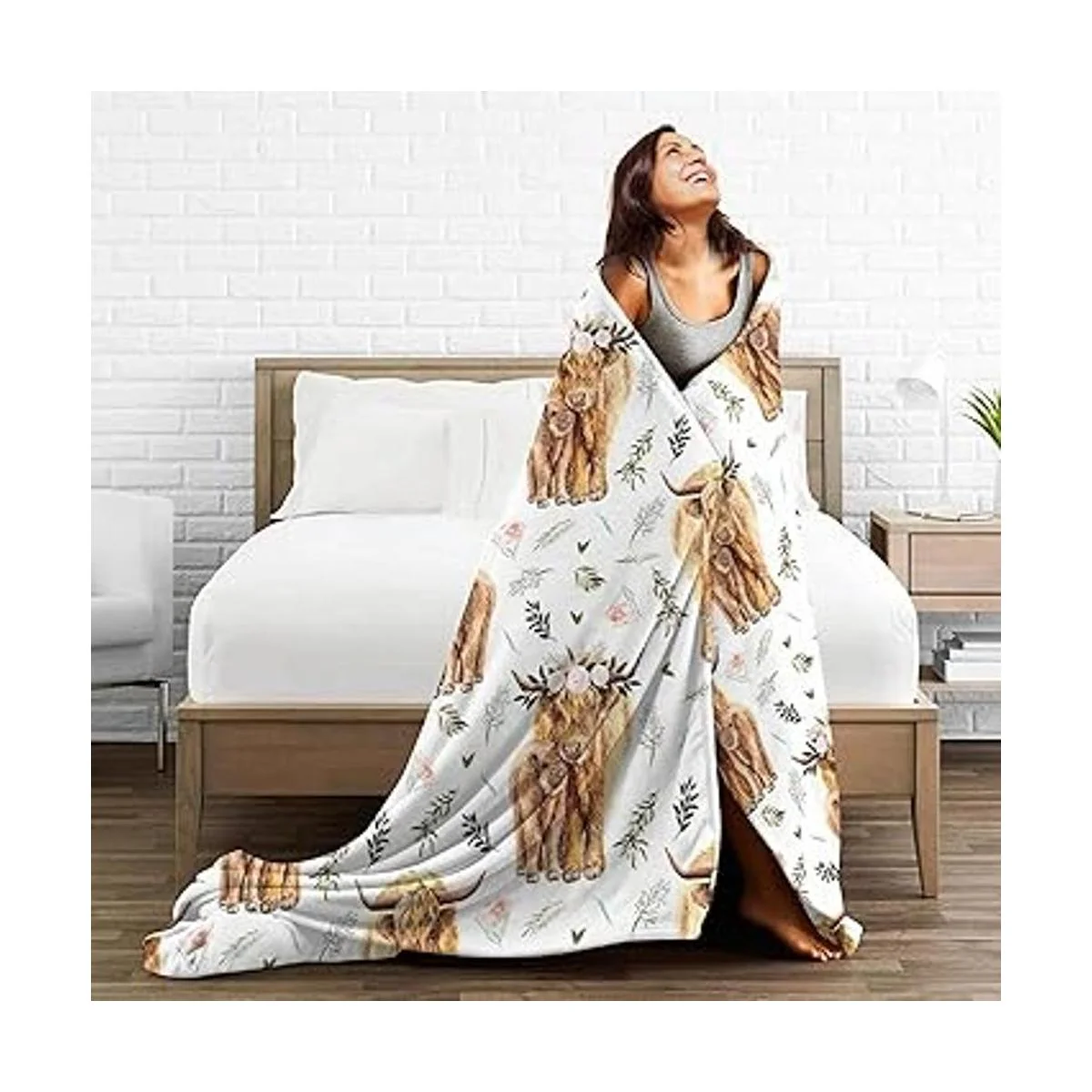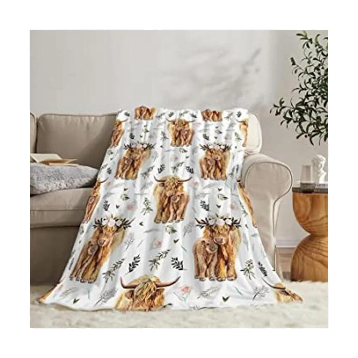 Manta y mantas con estampado de vaca de las tierras altas, lindas mantas rústicas de animales de granja de vaca y flores, mantas suaves y acogedoras de forro polar, manta de franela cálida para niñas, niños y adultos, sofá de viaje, 40 x 50 pulgadas