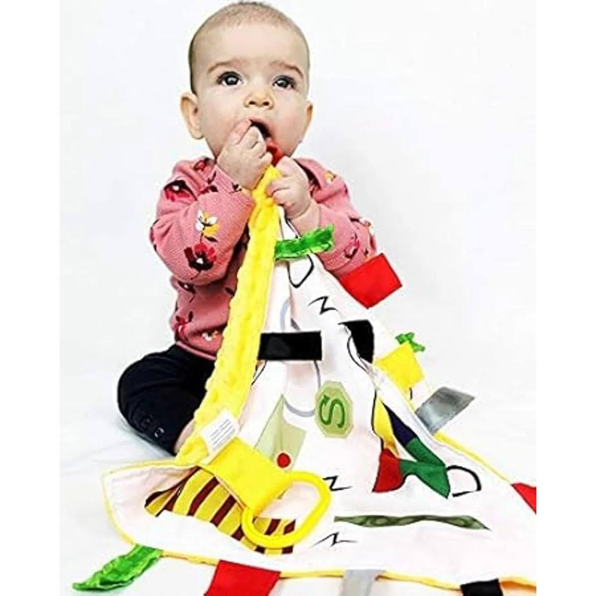 Las lengetas de la cinta ofrecen comodidad, juego, seguridad y un juguete mordedor para el bebé o niño. Doble costura para mayor seguridad. Un gran juguete de terapia para necesidades especiales y niños autistas.