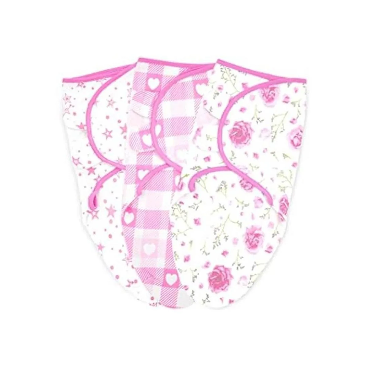 Mantas para bebés recién nacidos, niños y niñas 0 3 meses 3 juegos de mantas para envolver ajustables para bebé con correas de cierre., RosadoGris