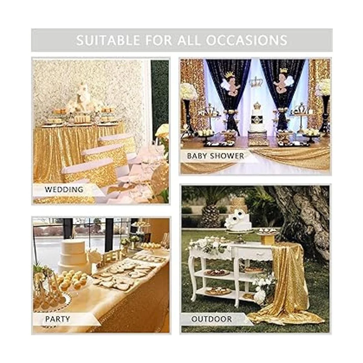 Mantel brillante de 48.0 x 79.9 in, con lentejuelas doradas, para decoración de mesa de Halloween