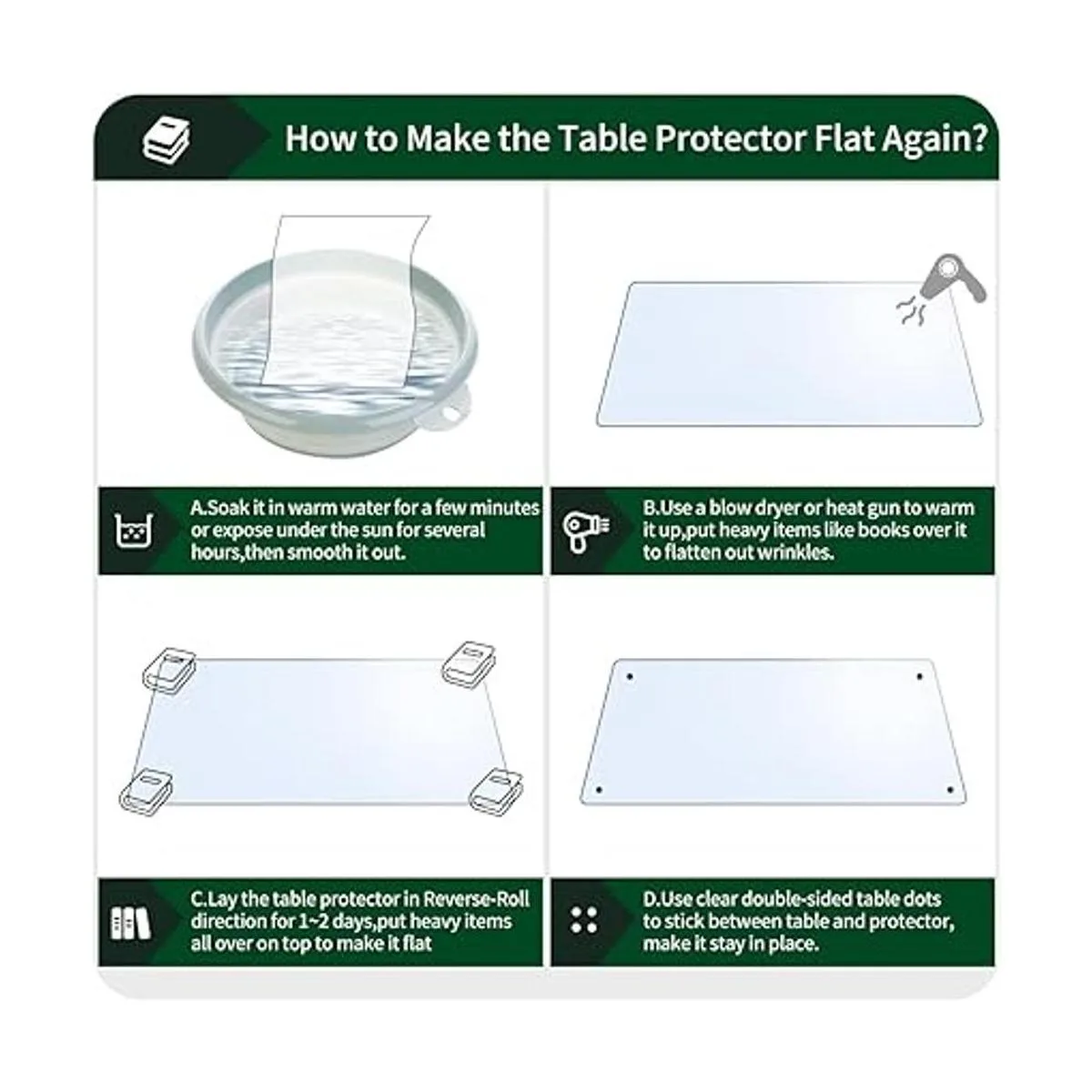 Limpiable, impermeable y resistente al calor La funda de mantel de 0.059 in de grosor es lo suficientemente pesada como para permanecer en su lugar. Este mantel transparente es muy fácil de limpiar, simplemente límpialo con un paño de cocina o rocíalo con agua. Y el mantel es resistente al calor, máximo de 176.0 F, lo mejor para mesa de cocina y comedor. Adecuado para el uso diario de tu familia y proporciona una manera rápida y rentable de proteger tus muebles y mostrar la belleza original de tu escritorio.