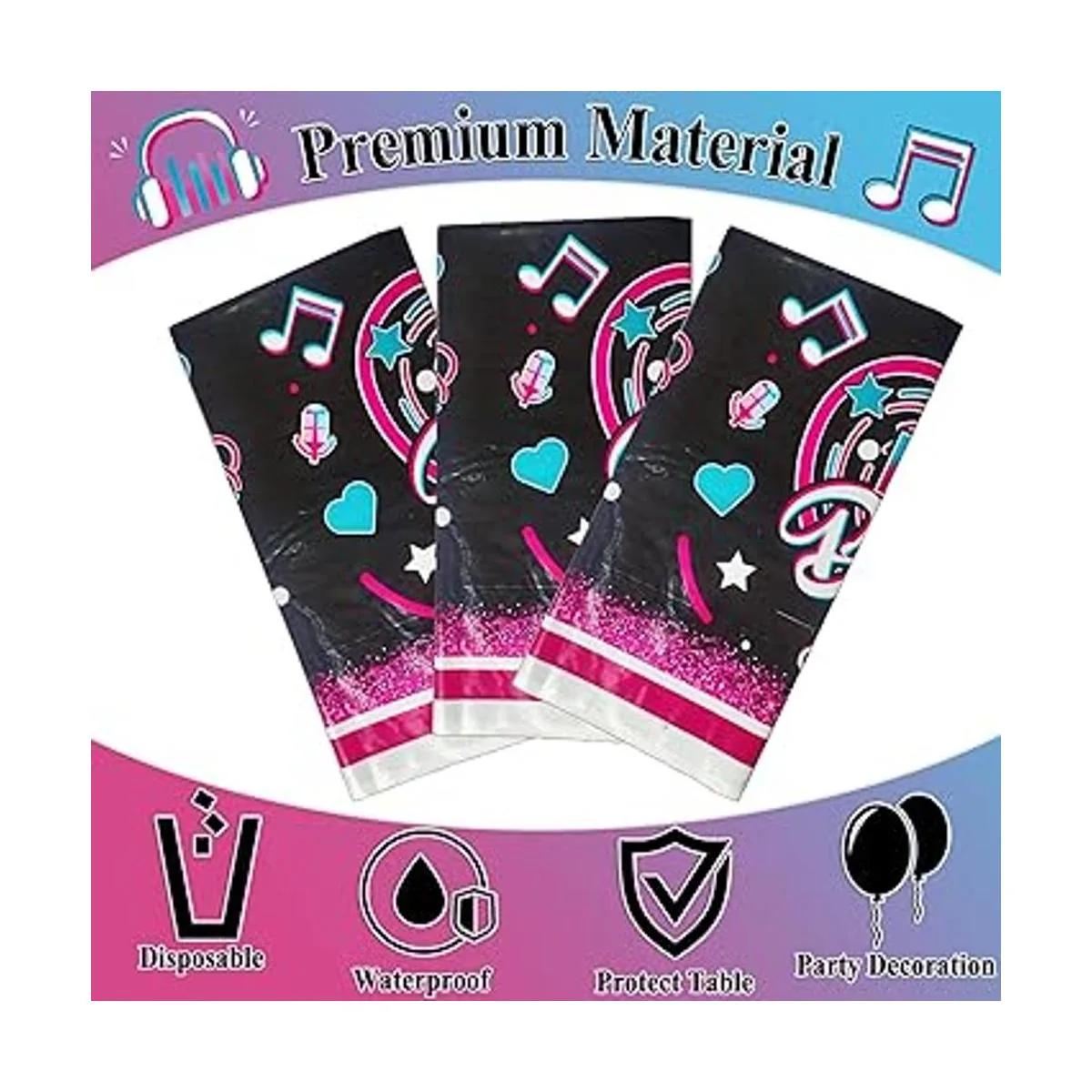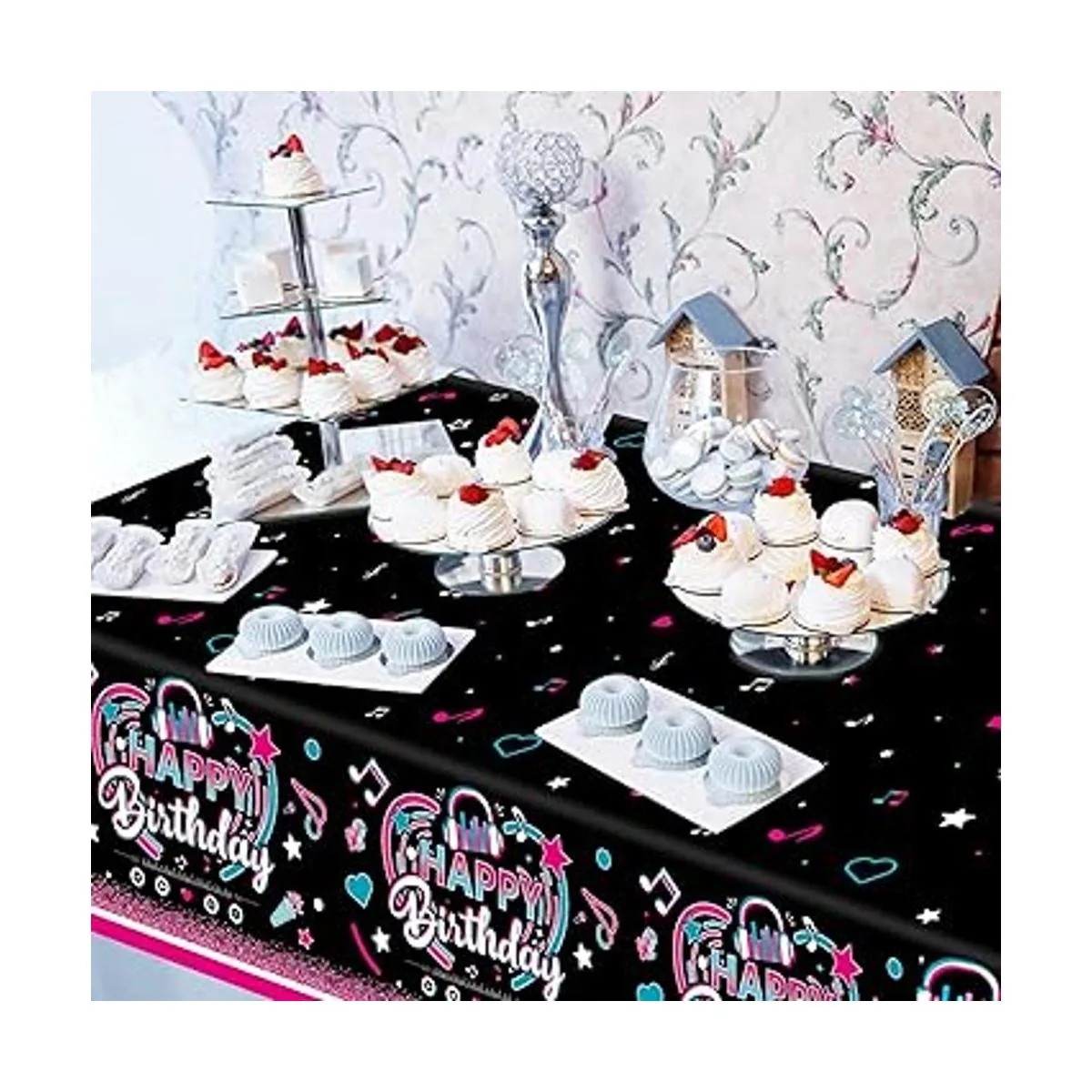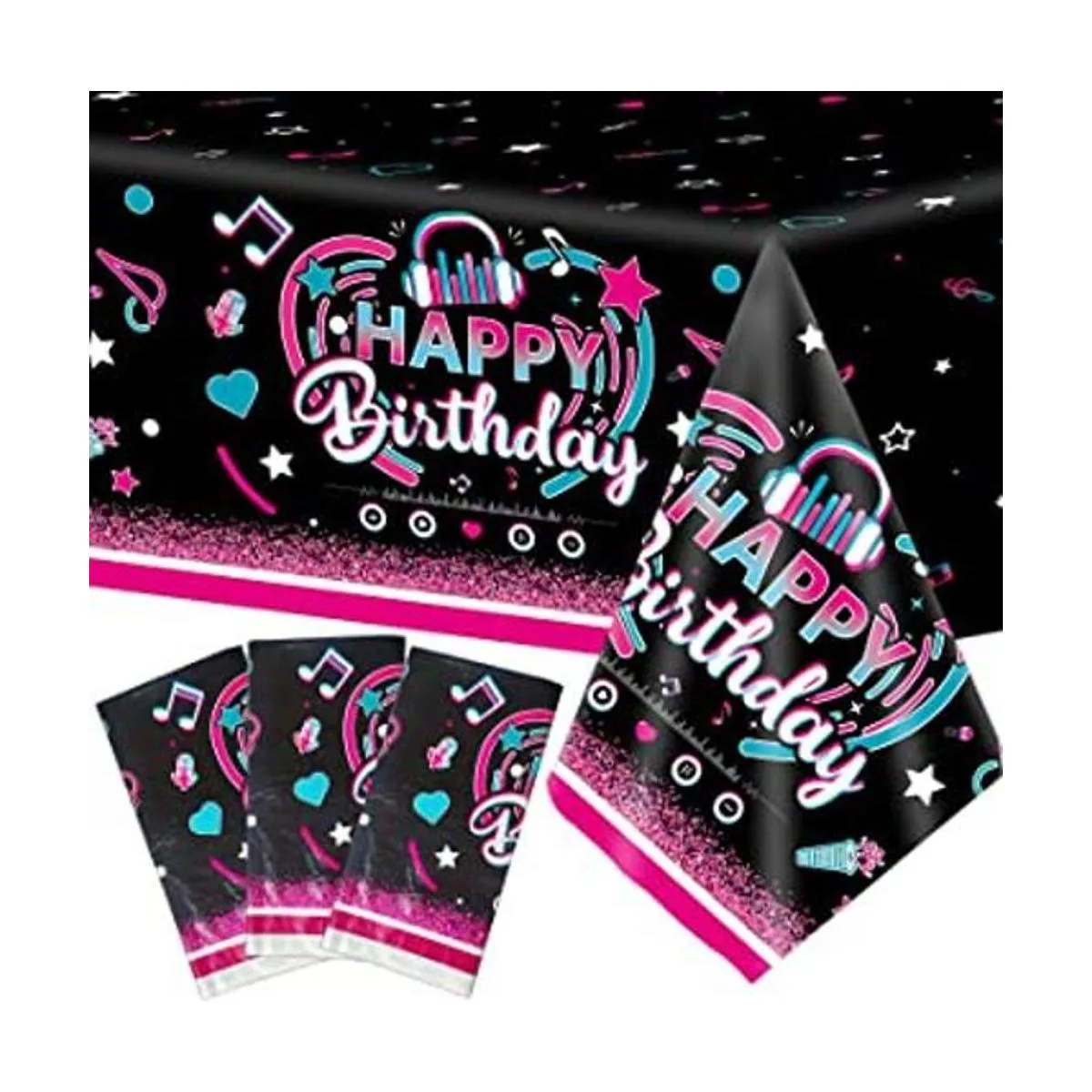 Mantel de 3 piezas para fiesta de música, decoración de mesa de feliz cumpleaños, notas musicales, suministros de fiesta con temática de redes sociales, mantel de plástico desechable