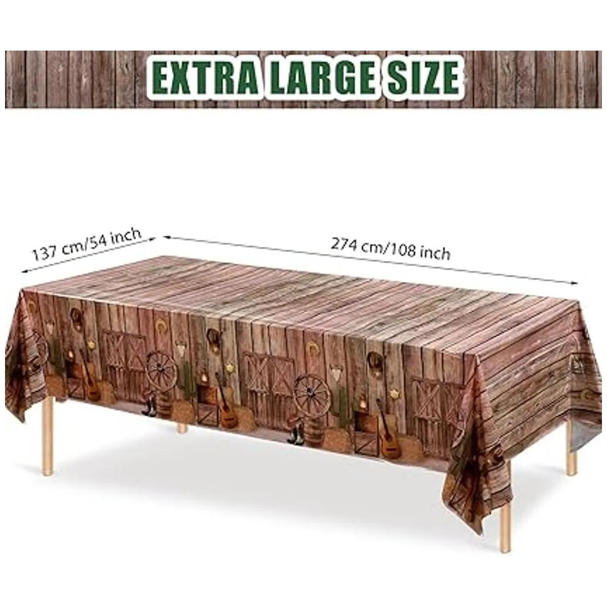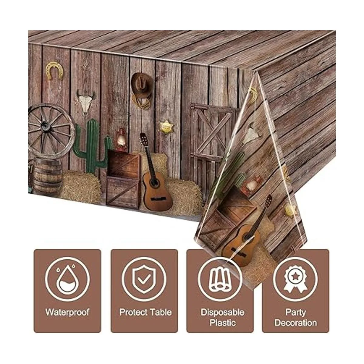 Estilo vaquero occidental: nuestro mantel de plástico de fiesta occidental está diseñado con elementos rústicos de puerta de granero de madera occidental en estilo vintage, que está lleno de belleza occidental, hace que tu fiesta occidental sea más notable, lo que te ofrece a ti y a los invitados un disfrute visual