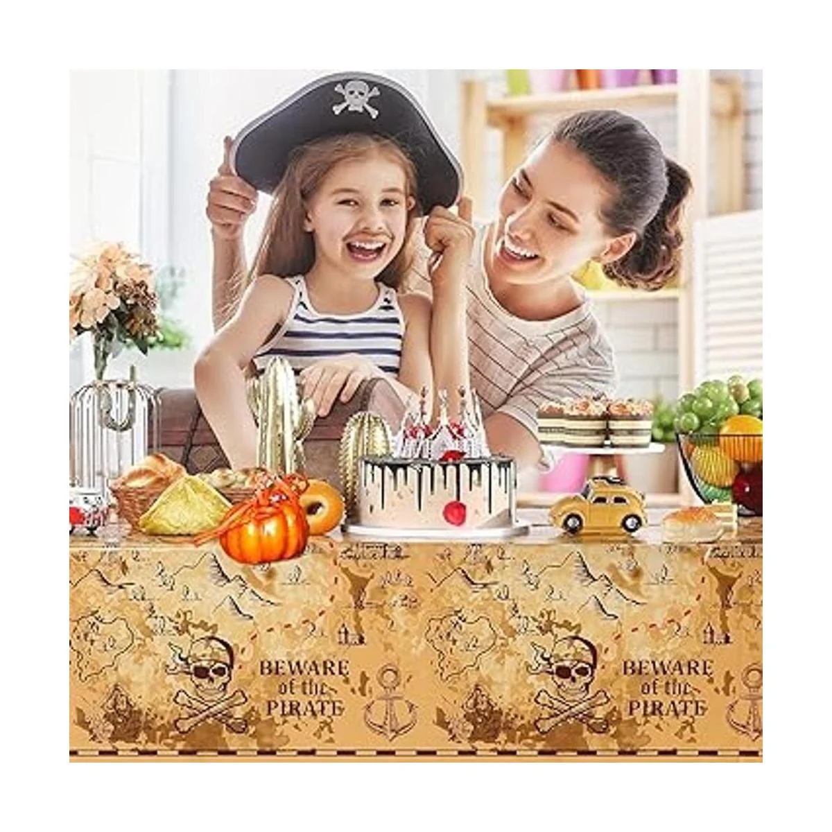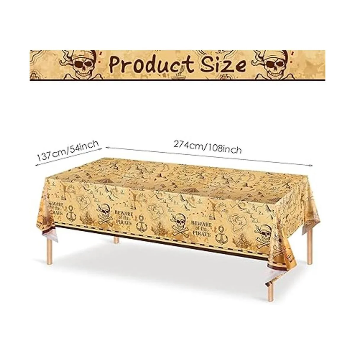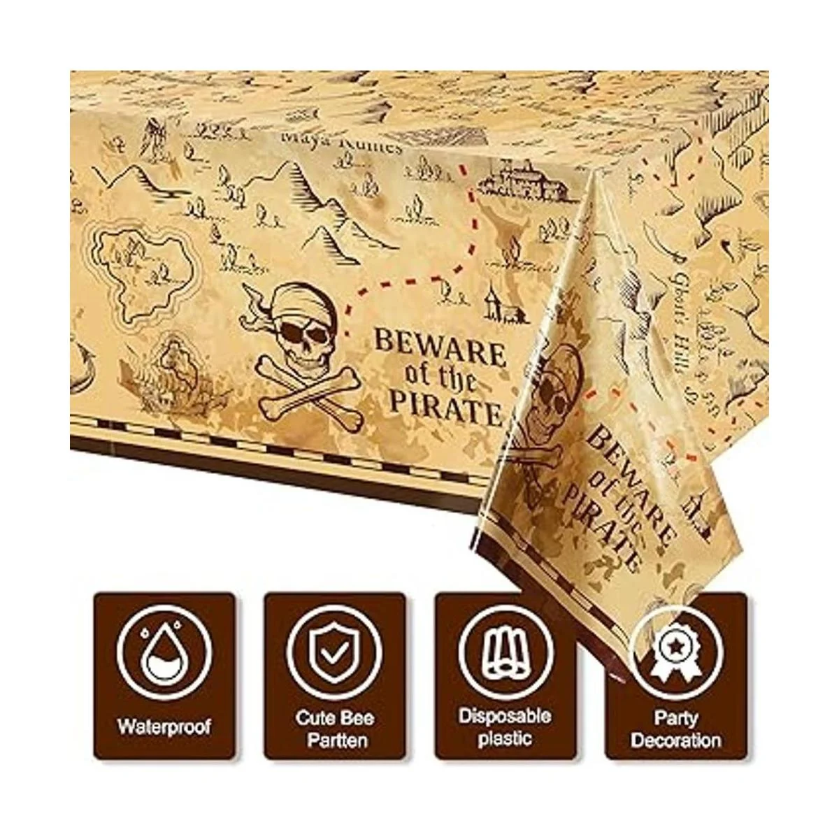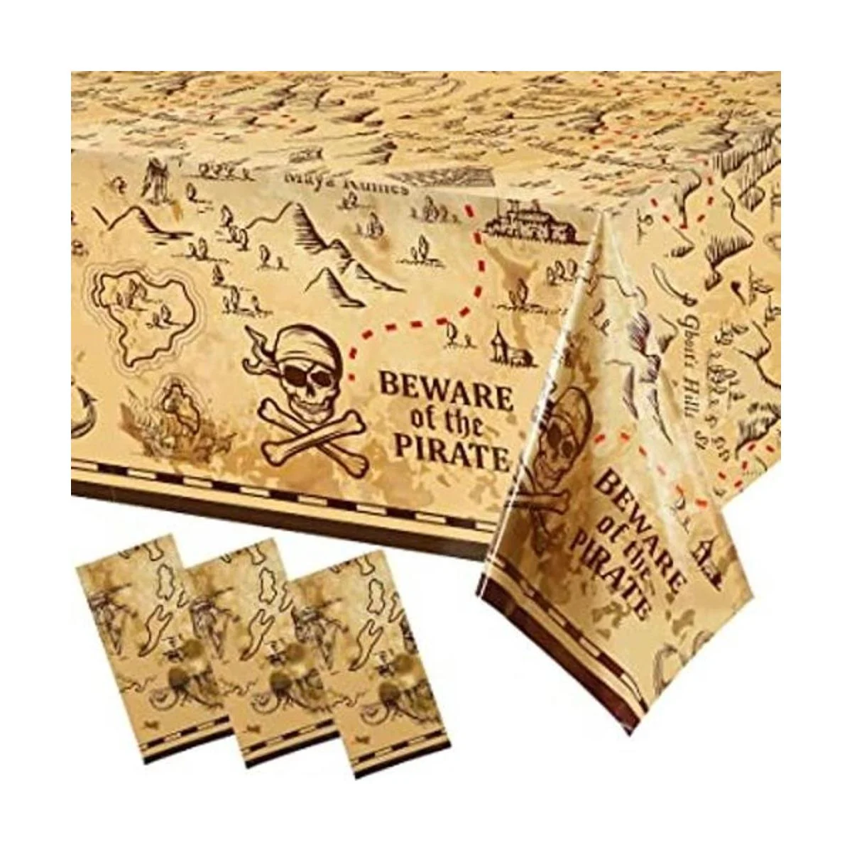 Mantel de fiesta pirata, mapa del tesoro, cubierta de mesa de plástico de isla del tesoro, suministros de fiesta náutica pirata, para decoración de fiesta de cumpleaños, 54 x 108 pulgadas 3 piezas