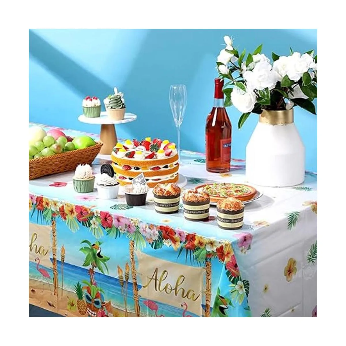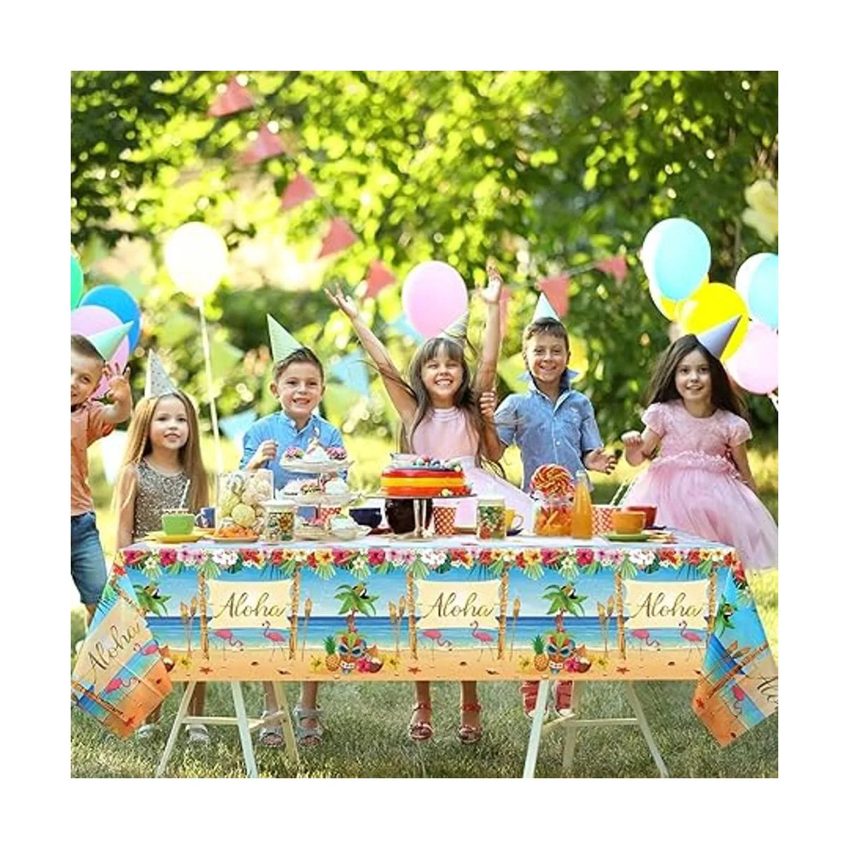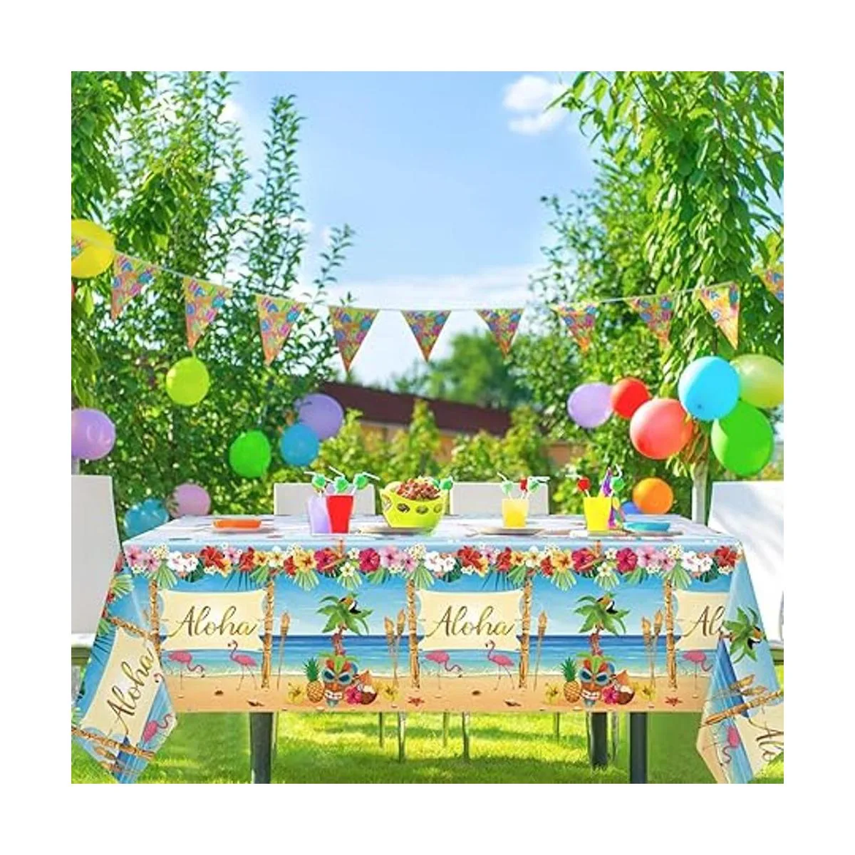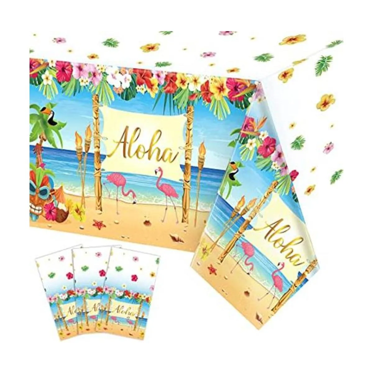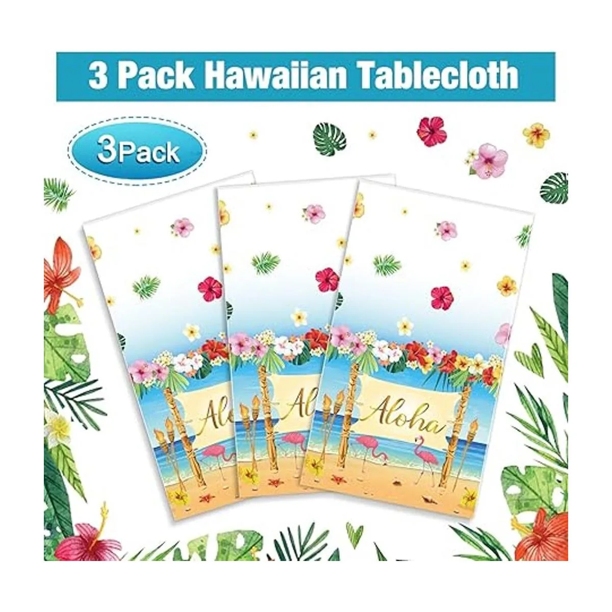 Mantel de flamenco, 3 piezas, de plástico, hawaiano, para fiesta, Aloha Luau, hojas de palmera tropical, flamenco, para cumpleaños, verano, piscina, playa, fiesta, decoración de vacaciones