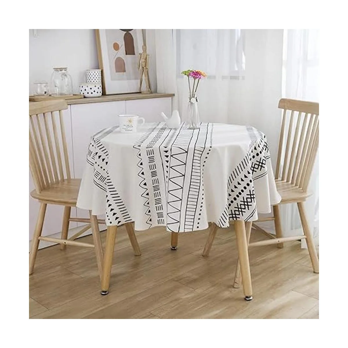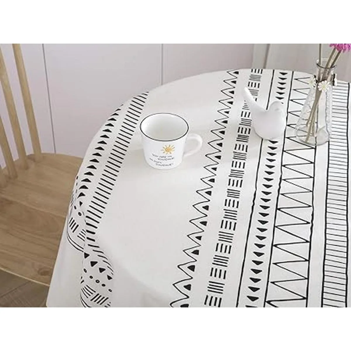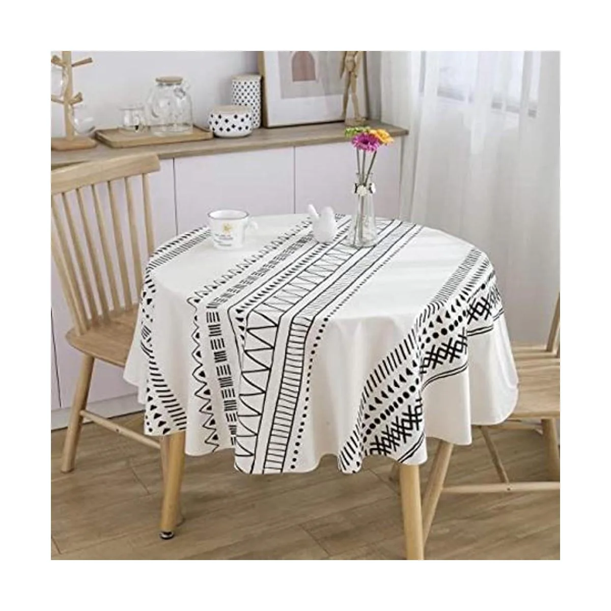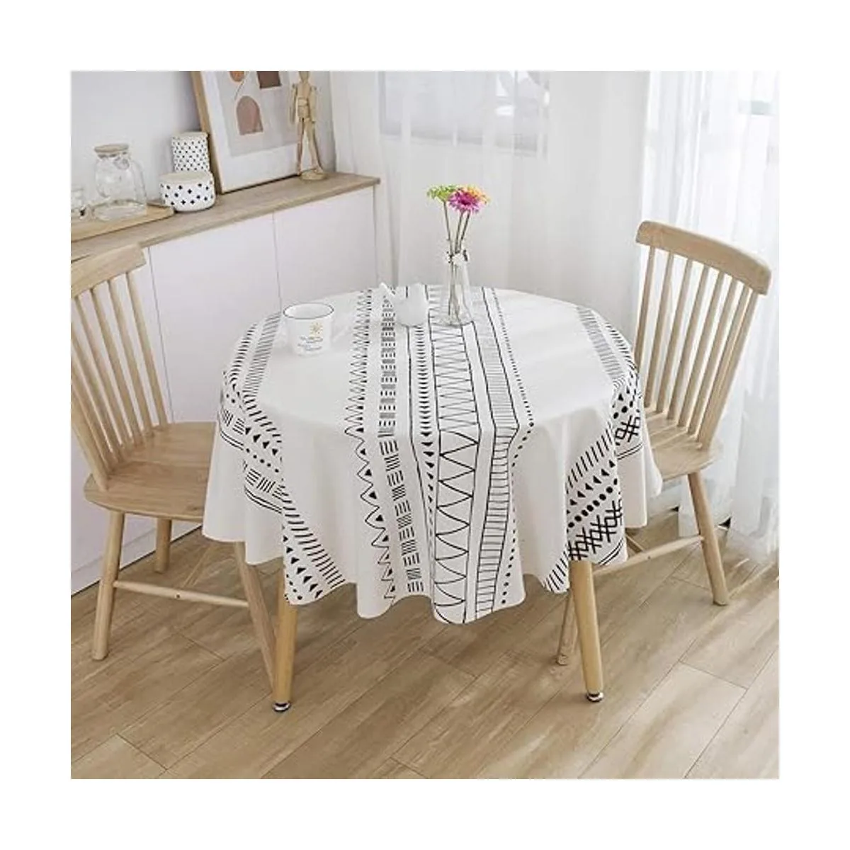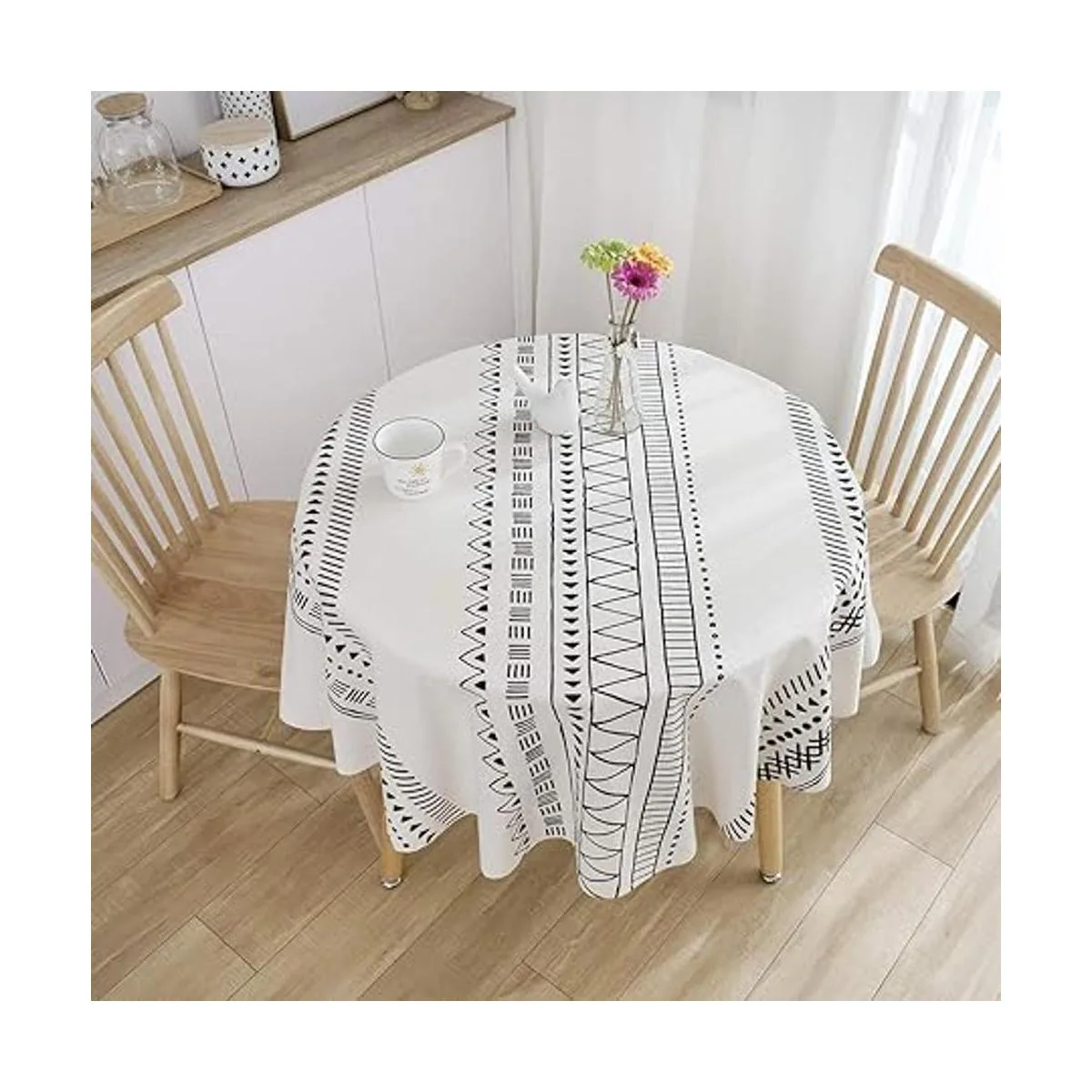 Material: este mantel bohemio redondo blanco y negro está hecho de lino de algodón de alta calidad, no se decolora, transfiere ni se rasga durante el lavado o el uso. El encogimiento del lino de algodón se controla alrededor del 3 al 5, por favor, no te preocupes por que el tamaño se vuelva demasiado pequeño después del lavado; no se desliza de la mesa ni se desmoronará fácilmente después del lavado o uso