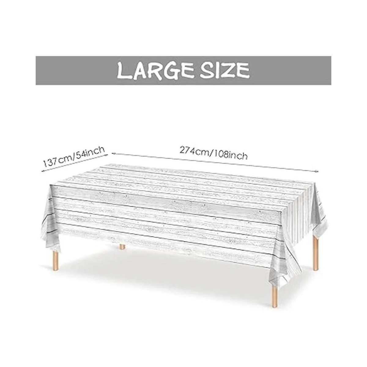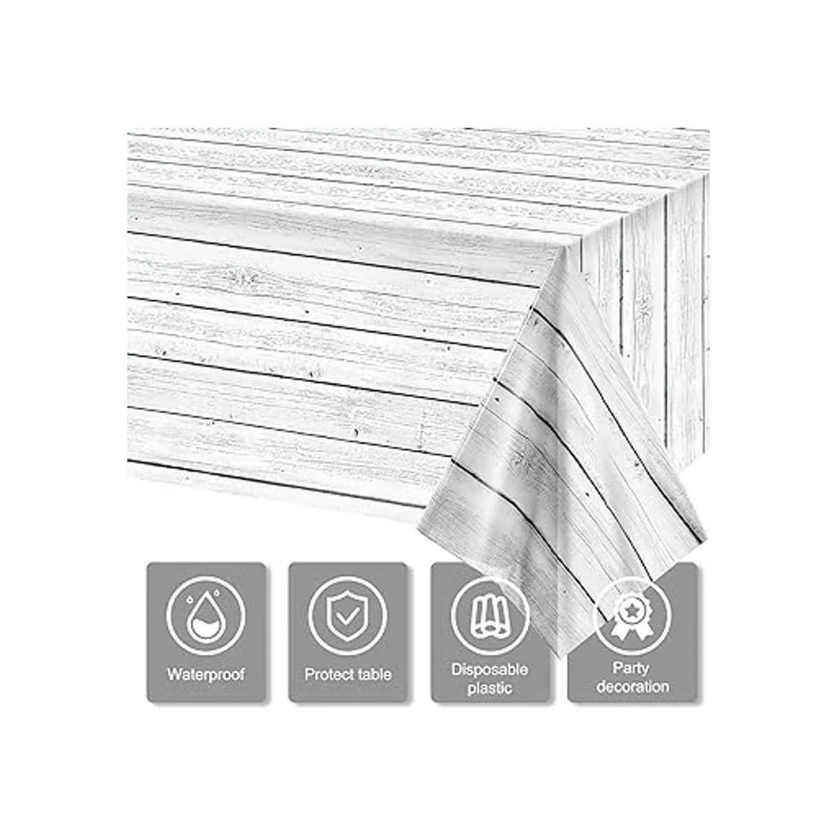 Material fiable: la funda de mesa de fiesta de madera blanca vintage está hecha de plástico de polietileno seguro y ligero, que no es demasiado delgado, antidesgarros y duradero, impermeable y fácil de limpiar, y puede evitar daños en la mesa de fiesta causados por derrames de bebidas