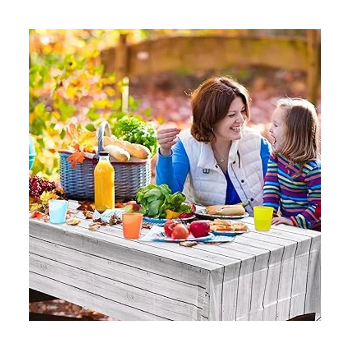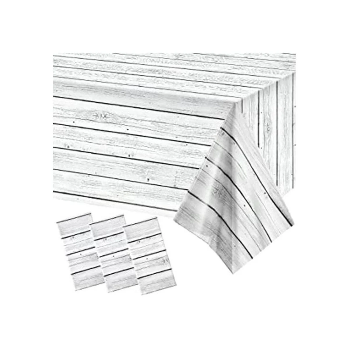Diseño de grano de madera: el mantel de plástico está diseñado con patrón de grano de madera blanco y un poco gris, rústico y transparente, lo que te hace sentir como si estuvieras en la naturaleza, y dando una perspectiva acogedora a cualquier persona; también se puede combinar con otros suministros de fiesta de grano de madera blanca para crear un ambiente rústico de fiesta